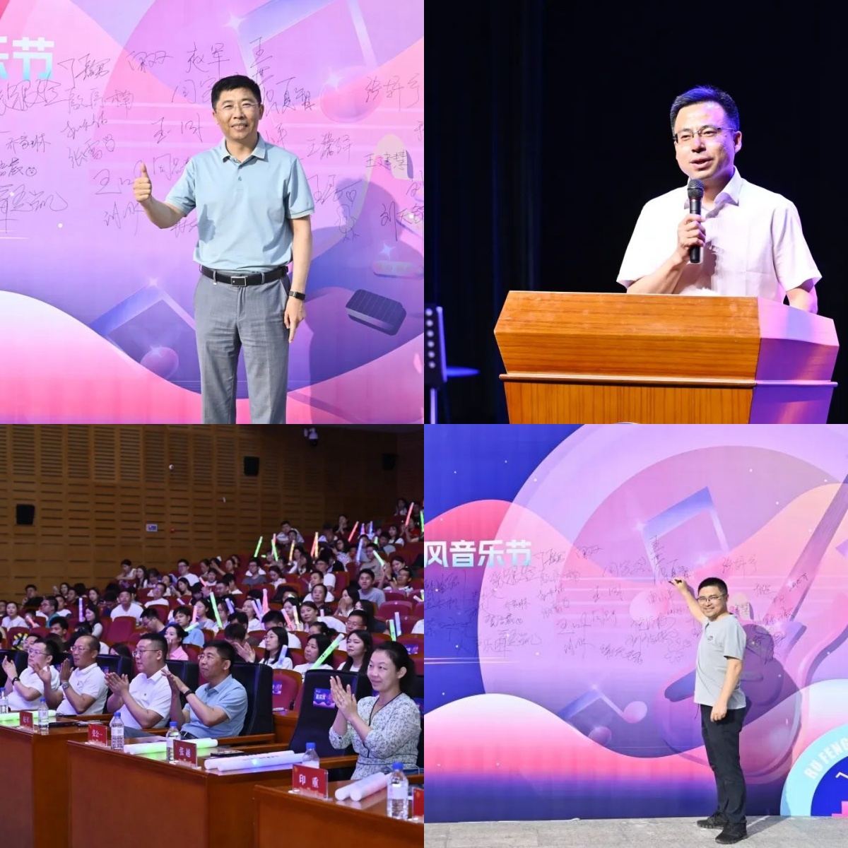 吉林大学商学与管理学院党委书记赵军教授,MBA教育中心主任兼商学与管理学院副院长张公一教授等院领导以及MBA教育中心全体老师出席了本次晚会。宜宾五粮液股份有限公司黑吉营销大区总经理刘海先生,宜宾五粮液股份有限公司黑吉营销大区吉林营销区域总经理王艺璇女士,五粮液吉林省经销商联谊会秘书长潘皓泳先生等也应邀莅临现场。这次音乐节是献给2024届MBA毕业生的礼物,也象征着一段青春旅程的辉煌里程碑。在这场特别策划的活动中,每一个音符、每一束灯光都满载着对MBA毕业生们过去两年努力与成长的庆祝,也满含对2022级MBA同学们即将踏上新征途的美好祝愿。
