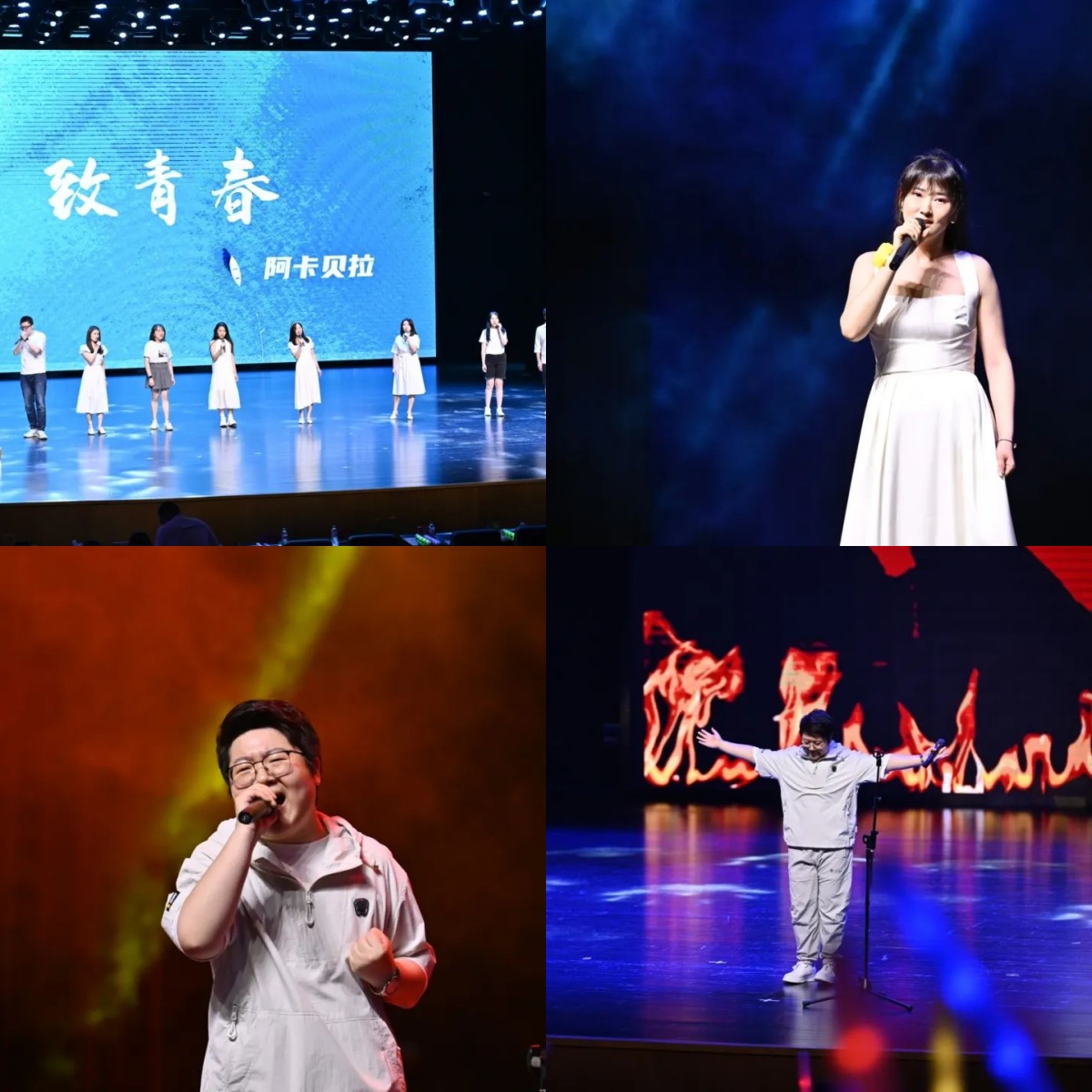 晚会的序幕以如风官方乐队的《泸沽湖》及《听见下雨的声音》等四首曲目燃炸开场,分别为我们描绘了远方、青春、理想与爱情的四幅画卷。精彩的开场演出之后,首先映入眼帘的是2024级刘俊辰与2022级王萌的《墨舞云裳》,墨色深邃,琴弦轻吟,引领观众穿越至一场跨越时空的音乐奇缘,古典与爵士的完美交融,编织出一幅幅如梦如幻的画卷。紧接着,2023级孙志煊以一曲《了表心意》触动人心,而特邀嘉宾茶啊冲暖茶时光人声乐团演绎的阿卡贝拉《致青春》,则让每个人的心灵都沉浸在那段衣袂飘飘、纯白无瑕的青春记忆之中。2022级MBA王子璇的《月牙湾》温柔响起,让我们的心悸动在那浅浅的月牙湾之上;随后2023级高语笛以《借过一下》继续点燃现场的气氛,它不仅仅是一首歌曲、更像是一段心灵的独白,让观众们在旋律的起伏中找寻自己的影子,回味那些生命中错过的风景和温柔的擦肩。