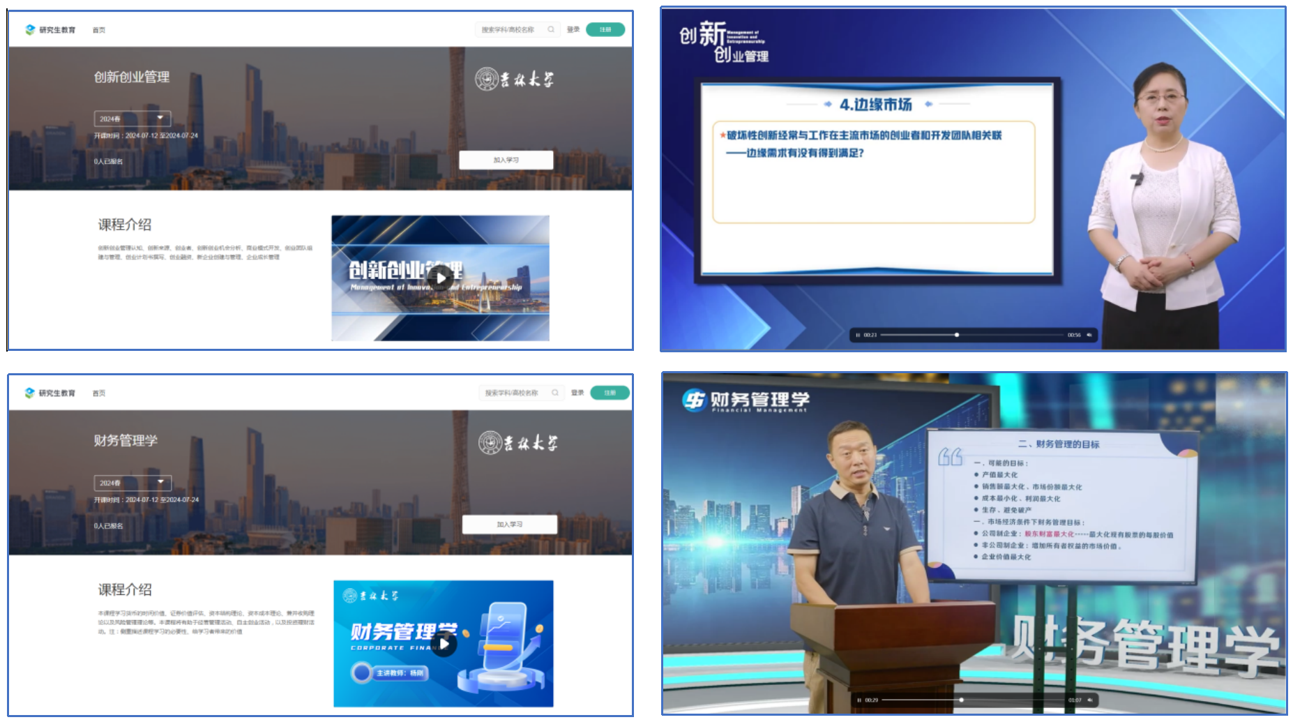 吉林大学MBA教育中心以发挥优质课程建设的示范引领作用、实现学校教育资源共建共享为目标,积极开展专业学位研究生课程建设工作,设立了研究生精品在线课程、特色微专业课程、“双师”案例课程、思政课程等项目,取得了长足进步和发展。未来,中心将持续推进在线精品课程建设工作,今年年底,计划完成四门核心课程《人力资源管理与开发》《公司治理》《组织行为学》《会计学》的在线录制工作。