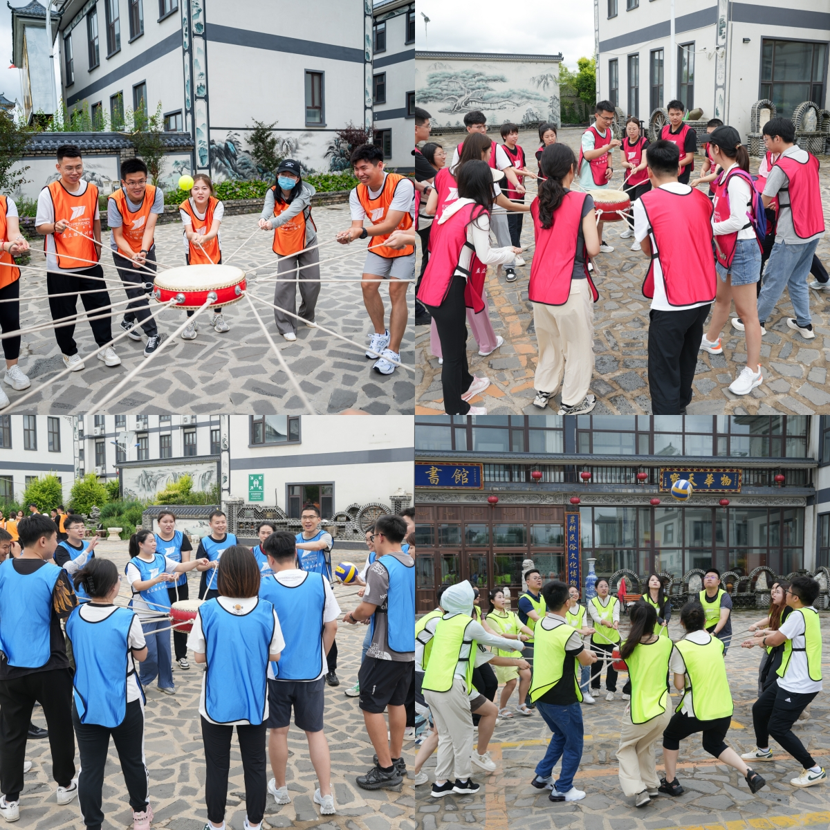 每组队员从对抗到合作,大家同起同坐、同心同向舞动 圈绳,在艰巨任务中挑战自我,提升团队凝聚力与向心力。
