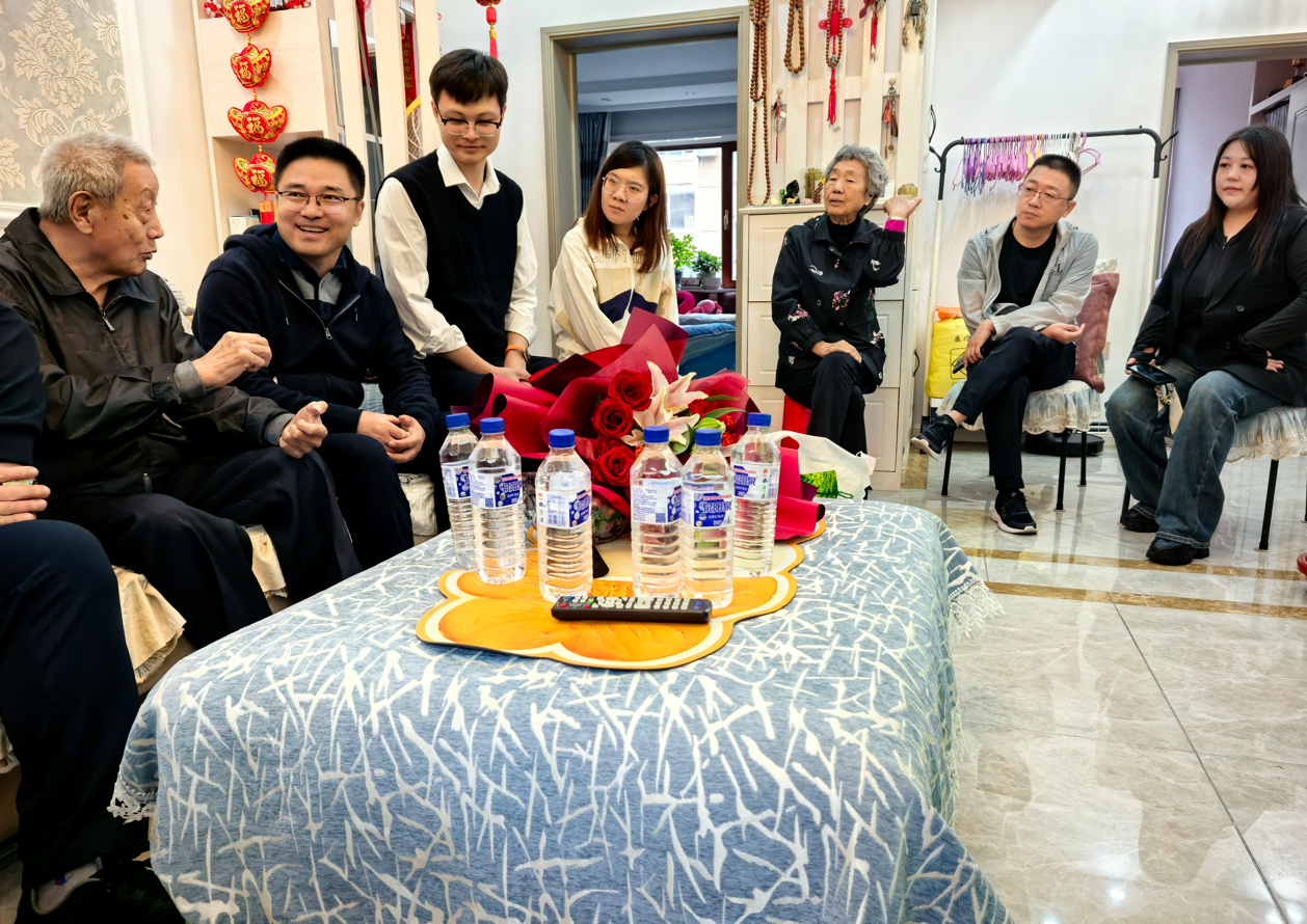 告别了刘启泉老人及夫人,吉林大学MBA的师生一行又来到百岁抗美援朝英雄高永清老人的家中进行探访。一进门,老人穿着整齐的军装早已等候多时,胸前的军功章熠熠生辉。老人与同学们进行了亲切交谈,他虽已百岁高龄,但精神矍铄,言语清晰,思维敏捷。老人的脸上刻满了岁月的痕迹,那每一道皱纹都仿佛是一段历史的印记。同学们围坐在老人身边,没有过多激昂的话语,却有着心灵的沟通。老人的每一个眼神、每一个微笑,都仿佛在诉说着那段波澜壮阔的历史。大家静静地陪伴在老人身边,聆听着历史的无声回响。在交流中,同学们感受到了老人身上历经岁月沉淀的那份从容与坚毅。他们仿佛看到了老人在抗美援朝的战场上,不畏强敌,英勇奋战的身影。那是怎样的一种勇气和担当,让他们在枪林弹雨中为了国家的尊严和和平,义无反顾地奉献出自己的一切。
