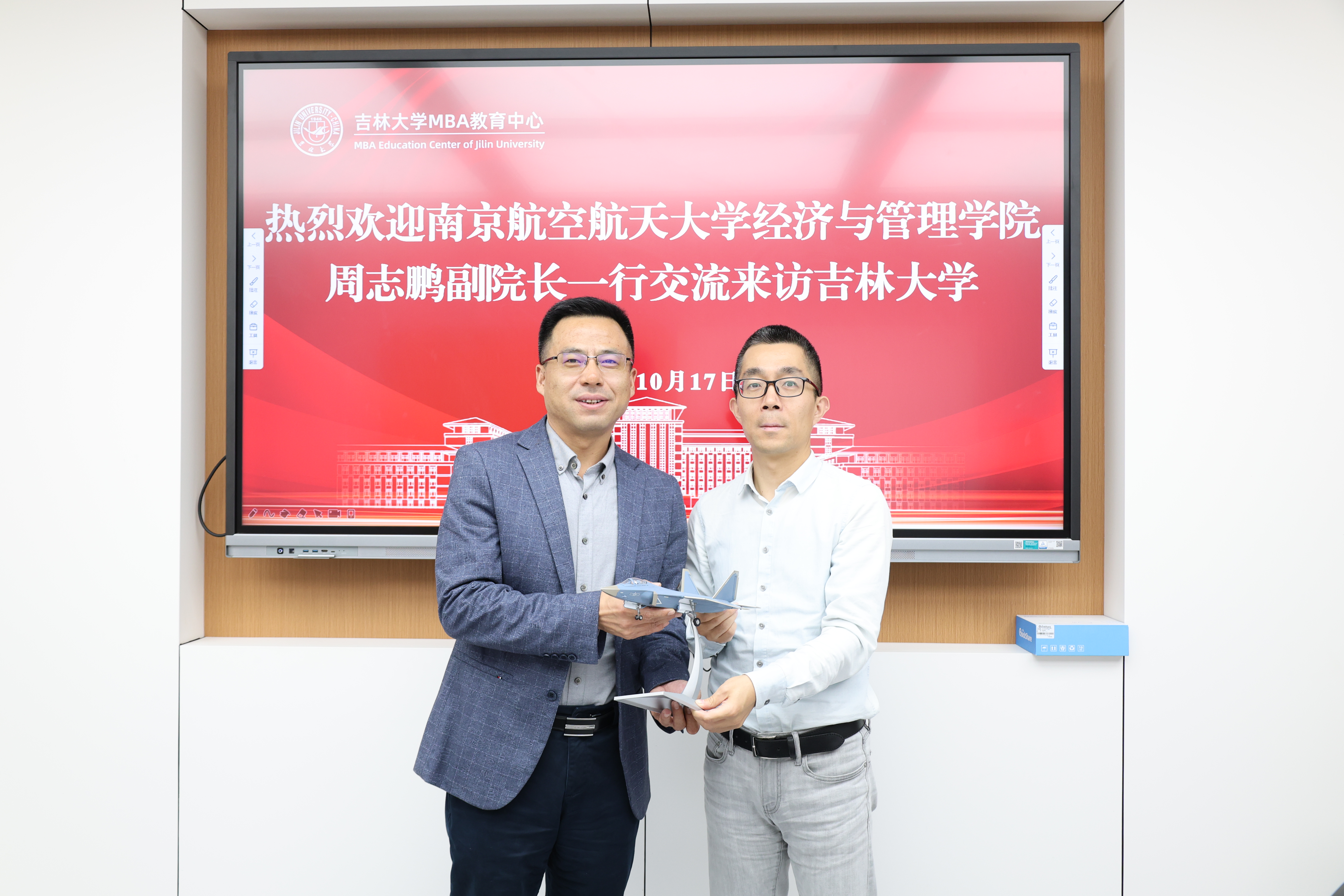 10月17日下午,南京航空航天大学经济与管理学院副院长周志鹏教授一行3人赴吉林大学MBA教育中心走访调研,吉林大学MBA教育中心主任兼商学与管理学院副院长张公一教授参加调研。