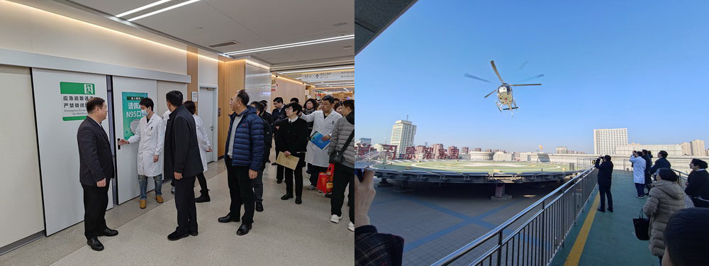 座谈结束后,在中日联谊医院副院长顾锐、南湖院区院长许卓等医疗专家的陪同下,商学与管理学院及冰雪实验室相关人员先后参观了中日联谊医院创伤综合病区、国家紧急医学救援基地(急救医学科、重症医学科)、骨科—脊柱外科病区、骨科—创伤骨科病区、骨科—骨关节和运动医学病区,动态观摩了航空医疗救护直升机立体转运,实地考察了南湖康复院区。