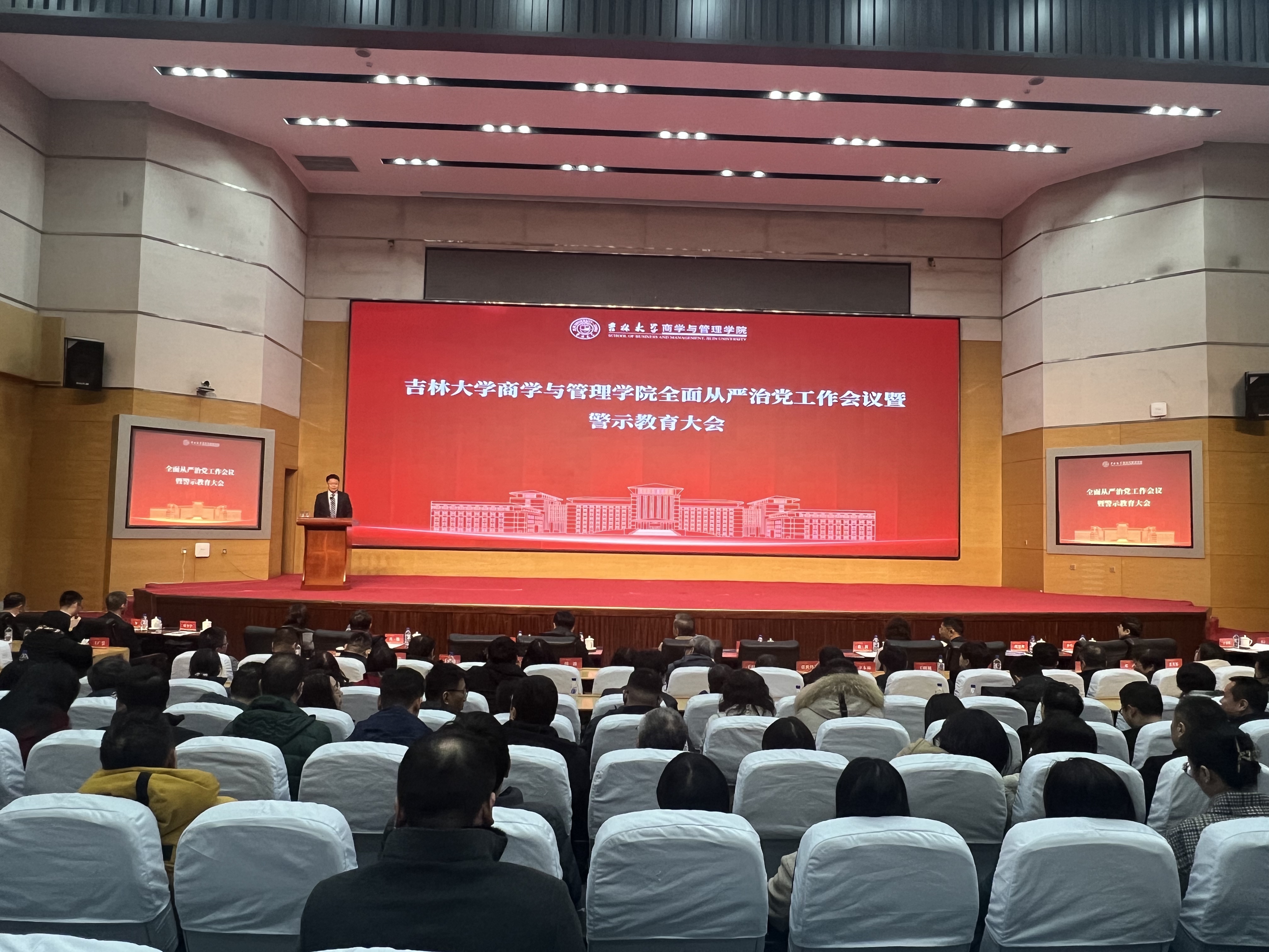2025年3月26日下午,商学与管理学院召开2025年全面从严治党工作会议暨警示教育大会,深入学习贯彻二十届中央纪委四次全会和学校全面从严治党工作会议精神,学院常务副院长隋建利主持会议。