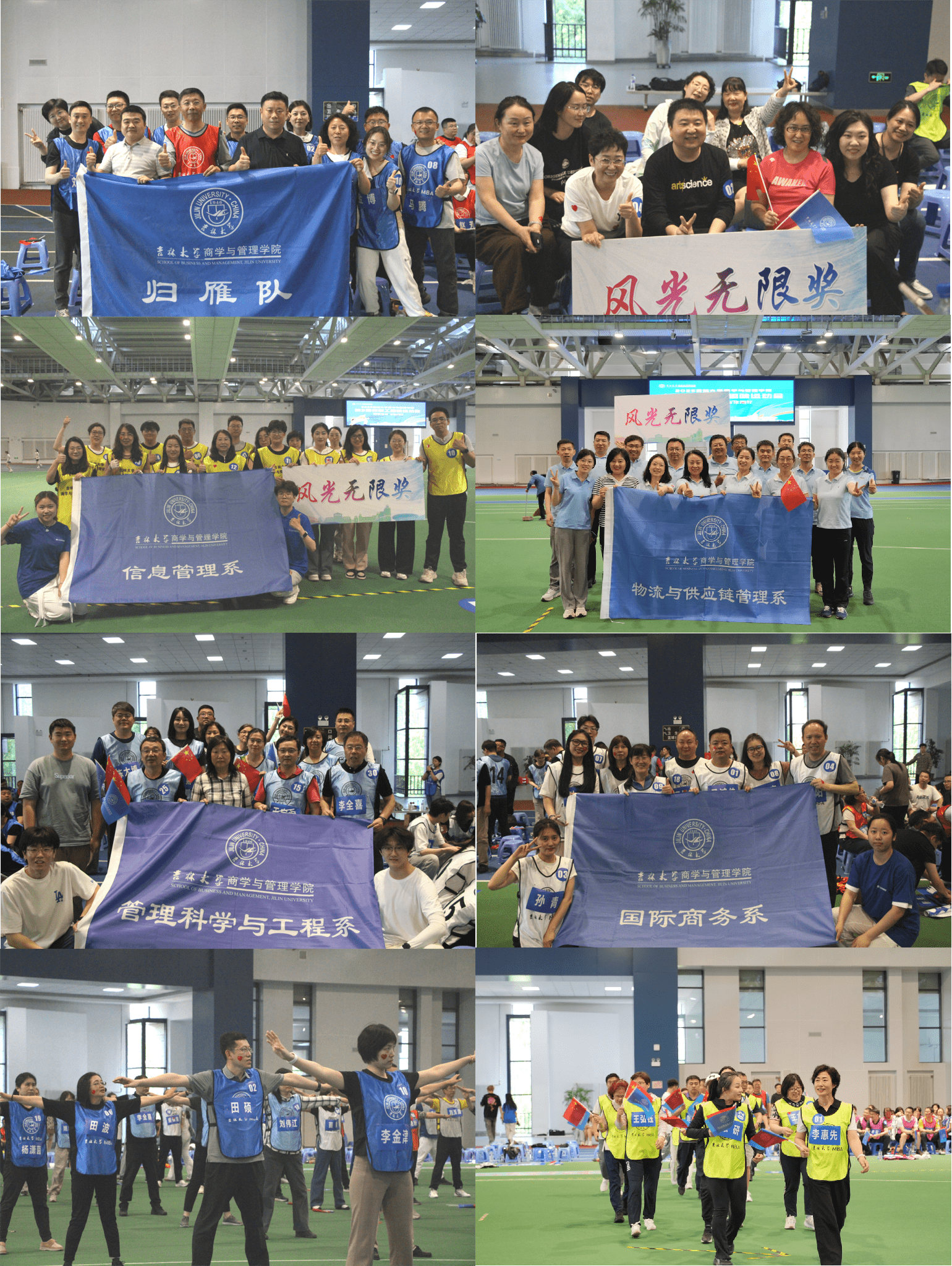 为着力打造昂扬向上的商管学院“家”文化,切实提升教职工身心健康水平,2025年5月28日下午,商学与管理学院工会在宋治平四楼田径场举办第三届教职工趣味运动会,以趣味活动促进心灵融合,以体育竞技凝聚奋进力量,以优良作风激发担当作为。学院13个教学系、行政机关、校友代表队共同参与其中,参与教职工、校友共270余人。
