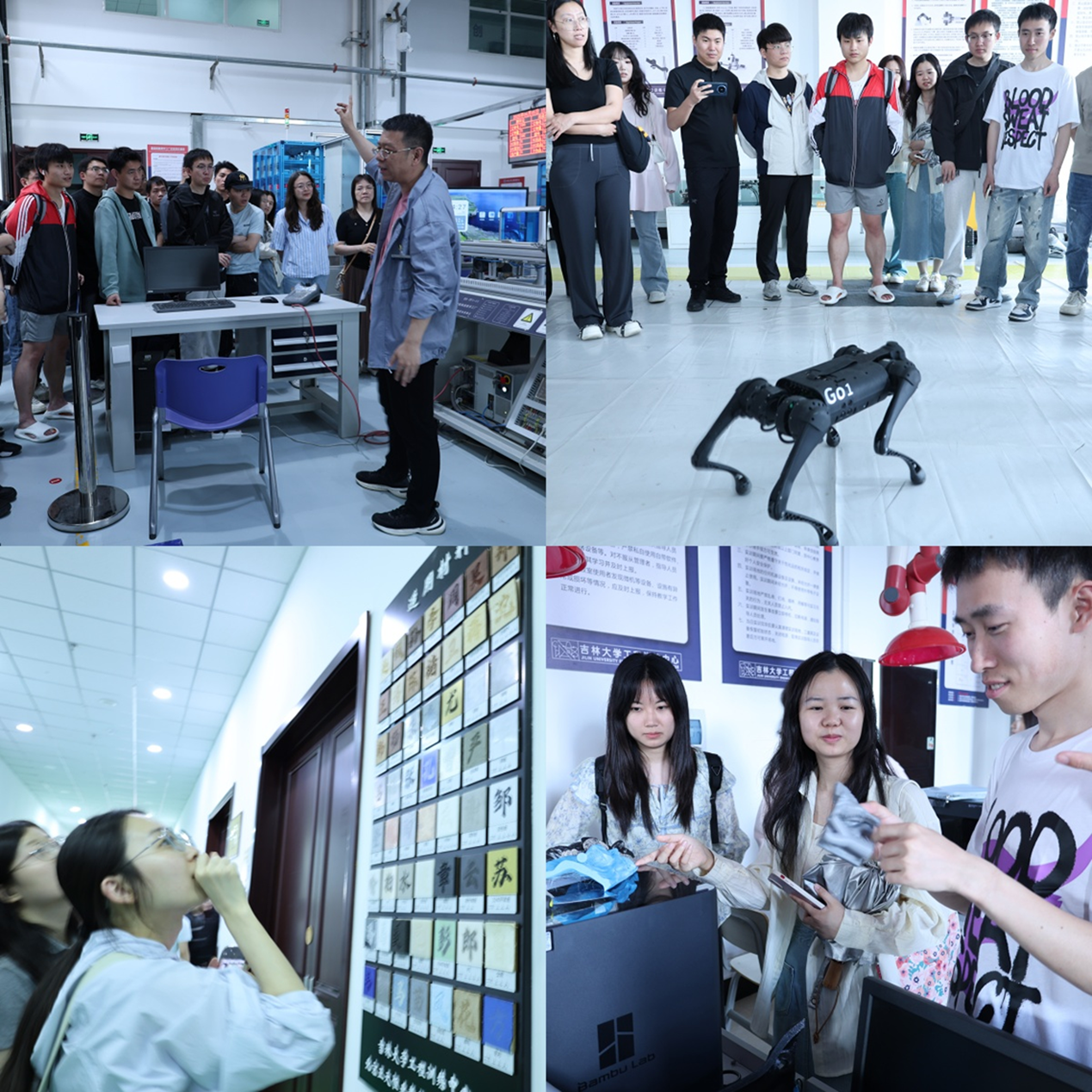 活动伊始,工程训练中心教师介绍了在教学理念、平台建设以及课程体系等方面的特色与亮点。随后,同学们依次参观了加工中心、智能制造、激光加工、3D 打印、多线联动、精密铸造以及竞技机器人等多个实训区域。通过参观与模拟实践,同学们深入了解了现代制造加工的智能设备与流程工艺,不出校园便能接触到真实的工业场景。