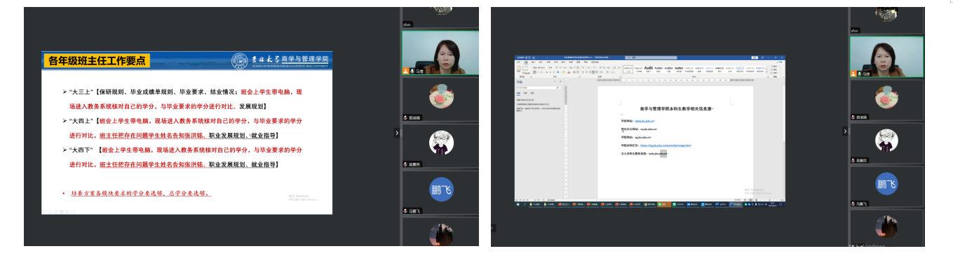 为进一步加强班主任队伍建设,全面发挥班主任对本科生学业发展、生涯规划、学风建设、科研启蒙的引领与指导作用,8月27日上午,商学与管理学院线上召开2025-2026学年班主任工作会议。会议由学院教学副院长马捷教授主持,学院2025-2026学年聘任的各年级本科生班主任、教学秘书张洪铭等共80余人参加了会议。