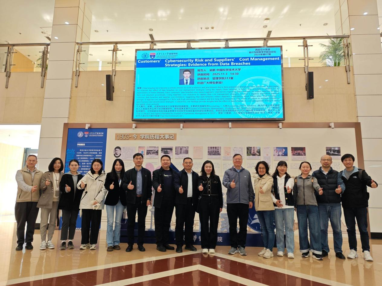 为切实提升工商管理 - 法学双学位本科项目的人才培养质量,精准把握国内前沿学科的最新动态与发展趋势,严格落实吉林大学 “争创一流、吉大何为” 大讨论中关于拔尖创新人才自主培养改革的相关要求,全力打造优质实习基地,有效完善专业 “招—培—就” 一体化建设能力,紧密结合学院工作部署,吉林大学商学与管理学院技术经济系主任郭润萍教授于 2025 年 11 月 2 日至 5 日率队前往西安开展本科专业人才培养调研工作。调研组成员包括技术经济系书记任伶副教授、副主任董碧松副教授、彭建娟教授以及王浩副教授。