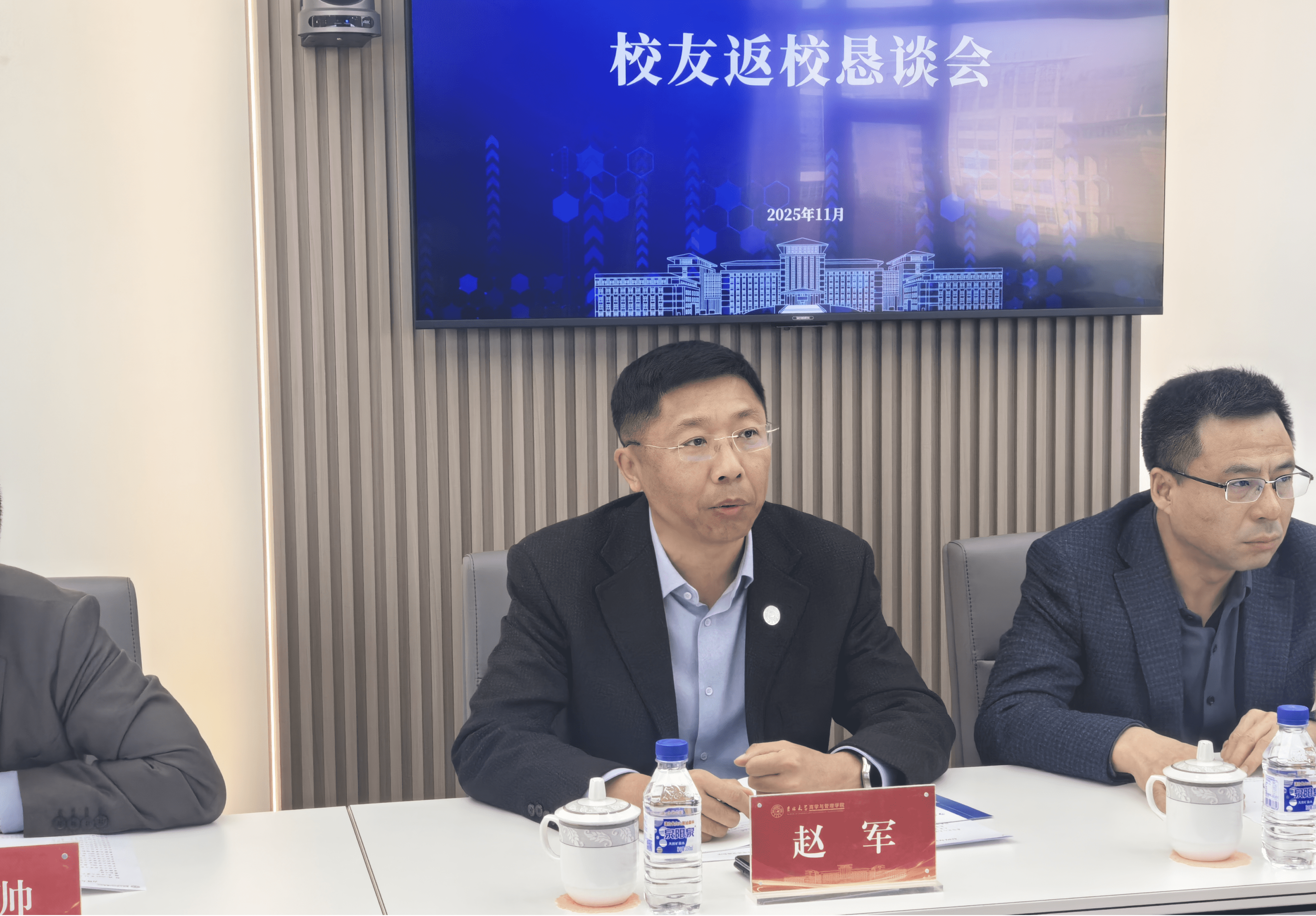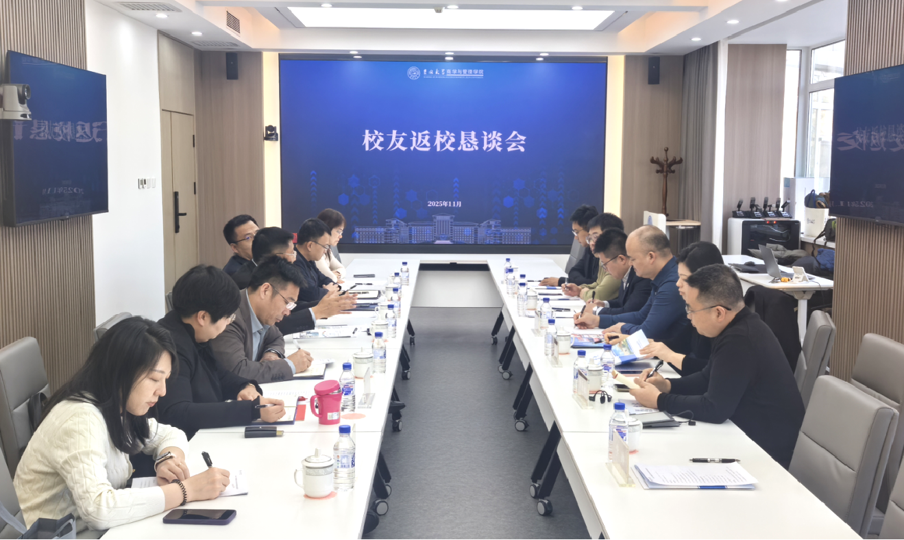 2025年11月17日,正值吉林大学校友会第四次会员代表大会举办之际,商学与管理学院迎来了一批关心学院成长、心系学院发展的优秀院友代表返校。为向校友们汇报学院发展现状与发展成果,凝聚学院力量攻坚“十五五”规划编制工作,商学与管理学院在东荣大厦A608会议室召开了商学与管理学院校友返校恳谈会,与校友代表们一道,共叙发展历史,共绘美好蓝图。学院领导班子成员、吉林大学MBA教育中心工作人员、返校校友代表参会。会议由学院党委书记赵军主持。