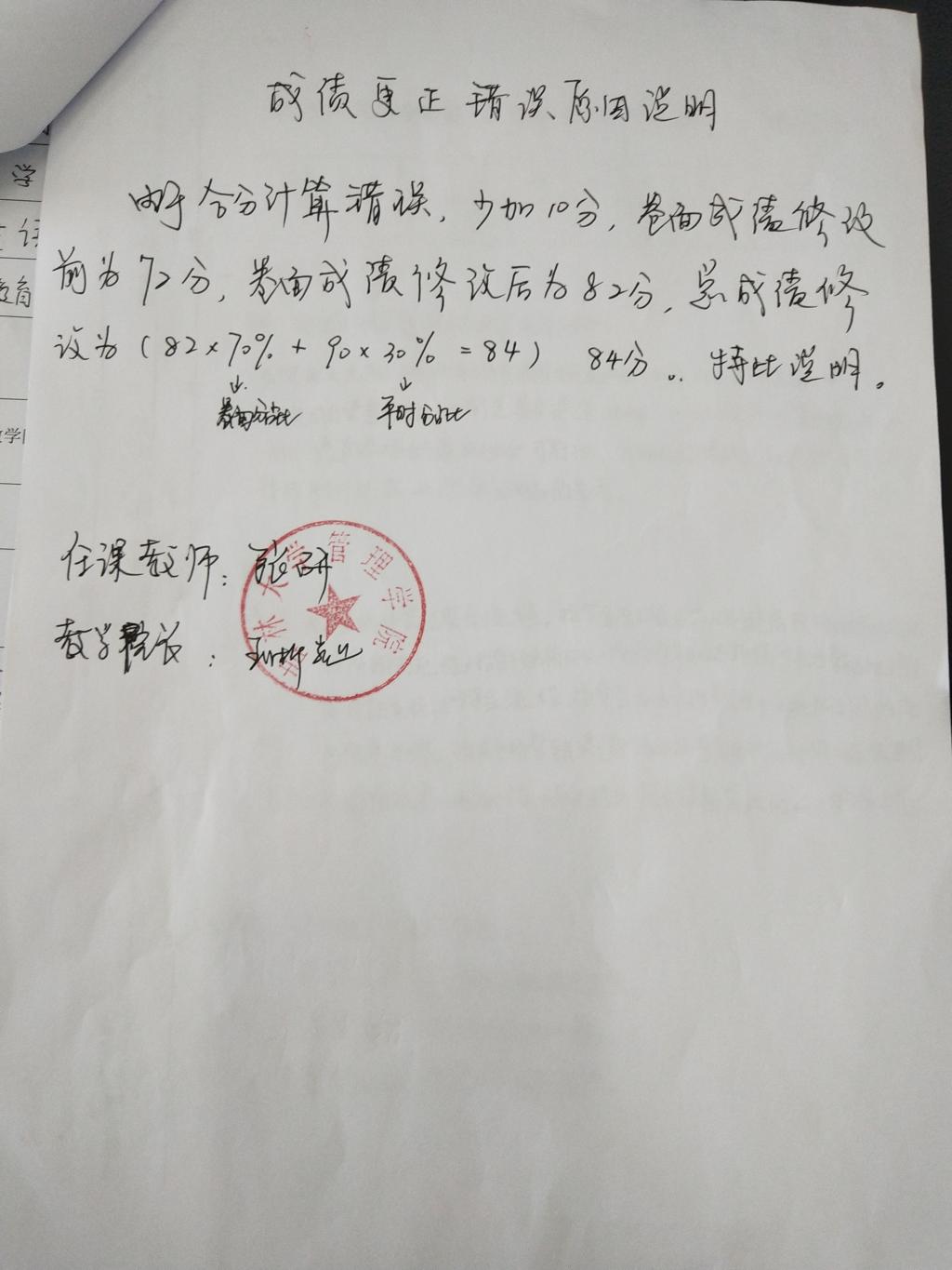 修改后成绩:84