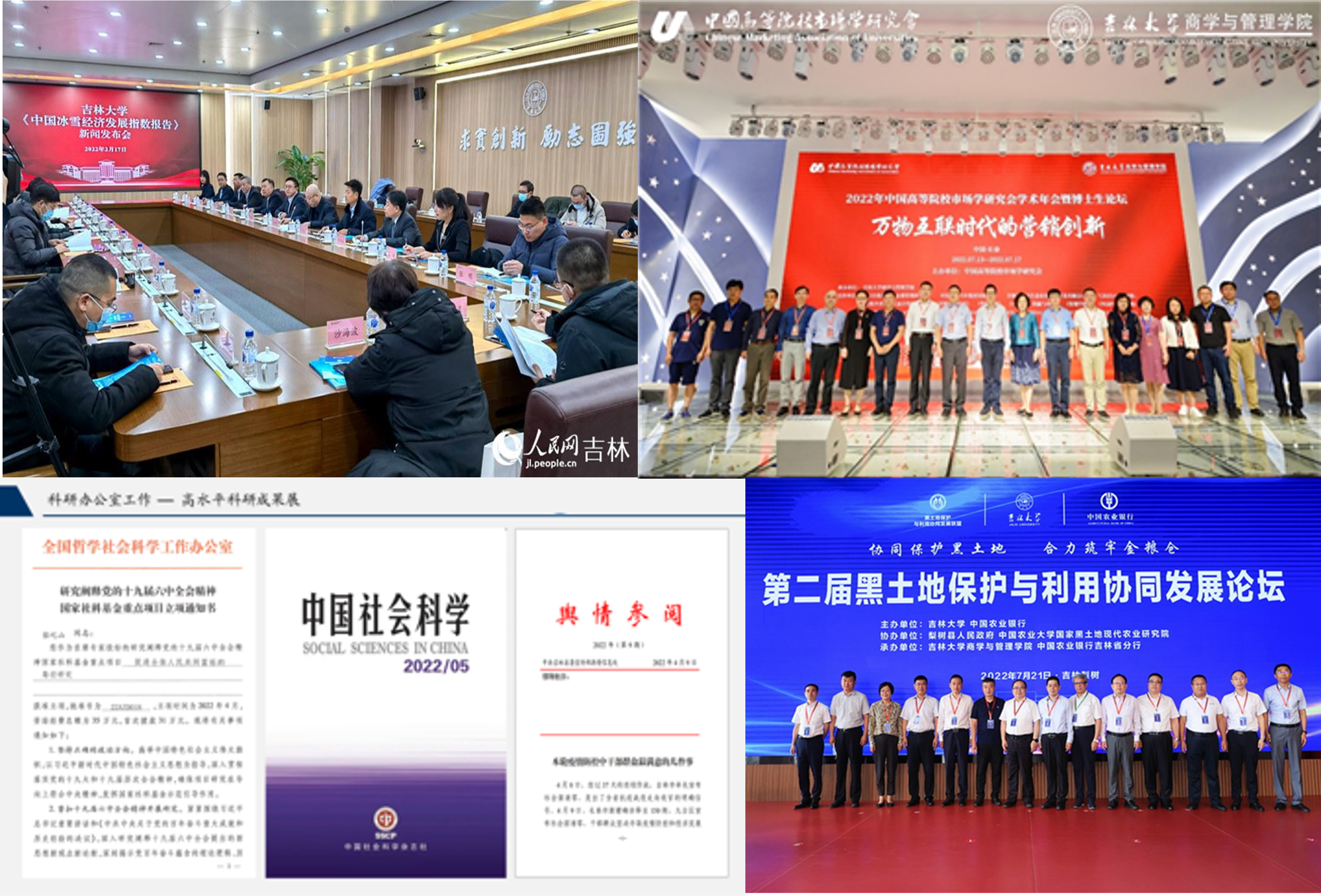 一年来,我们科研实力稳步提升。学院教师年度内共发表A类论文4篇,其中,《中国社会科学》中、英文版各1篇,B类论文13篇,C类论文119篇;科研项目和经费稳中有升,全年共获立项目120项,立项经费总额3000余万元,到账经费近2000万元。其中,获立国家社科基金重大、重点项目各2项,国家自然科学基金项目4项,教育部人文社会科学研究项目4项;4份研究报告得到党和国家领导人的肯定性批示。吉林大学数量经济研究中心蝉联CTTI高校智库百强;学院主办《情报科学》再次入选“2022中国国际影响力优秀学术期刊”,连续十年入选该榜单,主办的《数量经济研究》2022年进入中国社会科学评价研究院A刊评价名单,主办的英文期刊《Journal of Industrial Integration and Management : Innovation and Entrepreneurship》已被EI、ESCI检索,开始申请SSCI检索。全国首个全面的冰雪经济指数报告《中国冰雪经济发展指数报告》成功发布,在全国形成吉大声音、吉大风格、吉大品牌。