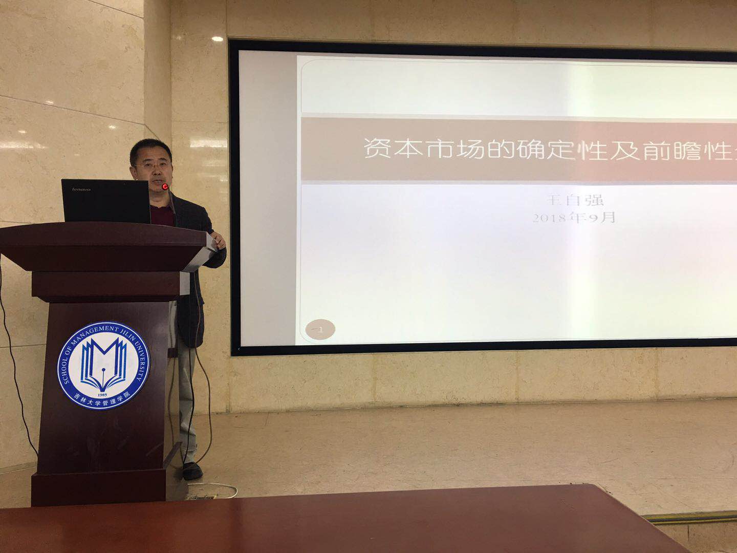 作为会计系“汇”场之一,3月19日下午14:30,来自北京万博新经济研究院的理事、副院长王自强研究员在吉林大学南岭校区逸夫教育大楼B214为我院2017级会计专业研究生以及全日制MPAcc和MBA学员做了题为“中国资本市场的确定性和前瞻性分析”两个小时的精彩报告。