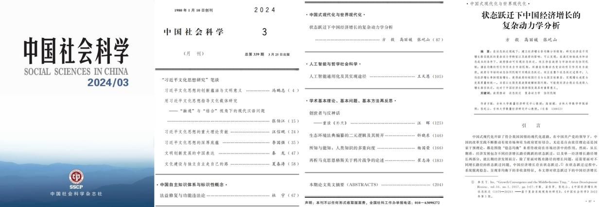 吉林大学数量经济研究中心方毅教授、张屹山教授、数学学院高丽媛老师等在《中国社会科学》2024年第3期发表题为《状态跃迁下中国经济增长的复杂动力学分析》的文章。该文基于新时代中国经济增长状态跃迁的重要特征,分析中国经济增长路径跳跃过程中的复杂动力学机制,探讨其中政府作用。