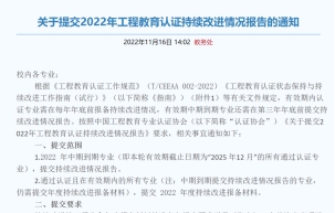 发布《关于提交2022年工程教育认证持续改进情况报告的通知》。