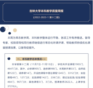 发布《吉林大学本科教学质量周报(2022-2023-1 第十二期)》。