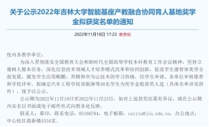 发布《关于公示2022年吉林大学智能基座产教融合协同育人基地奖学金拟获奖名单的通知》。