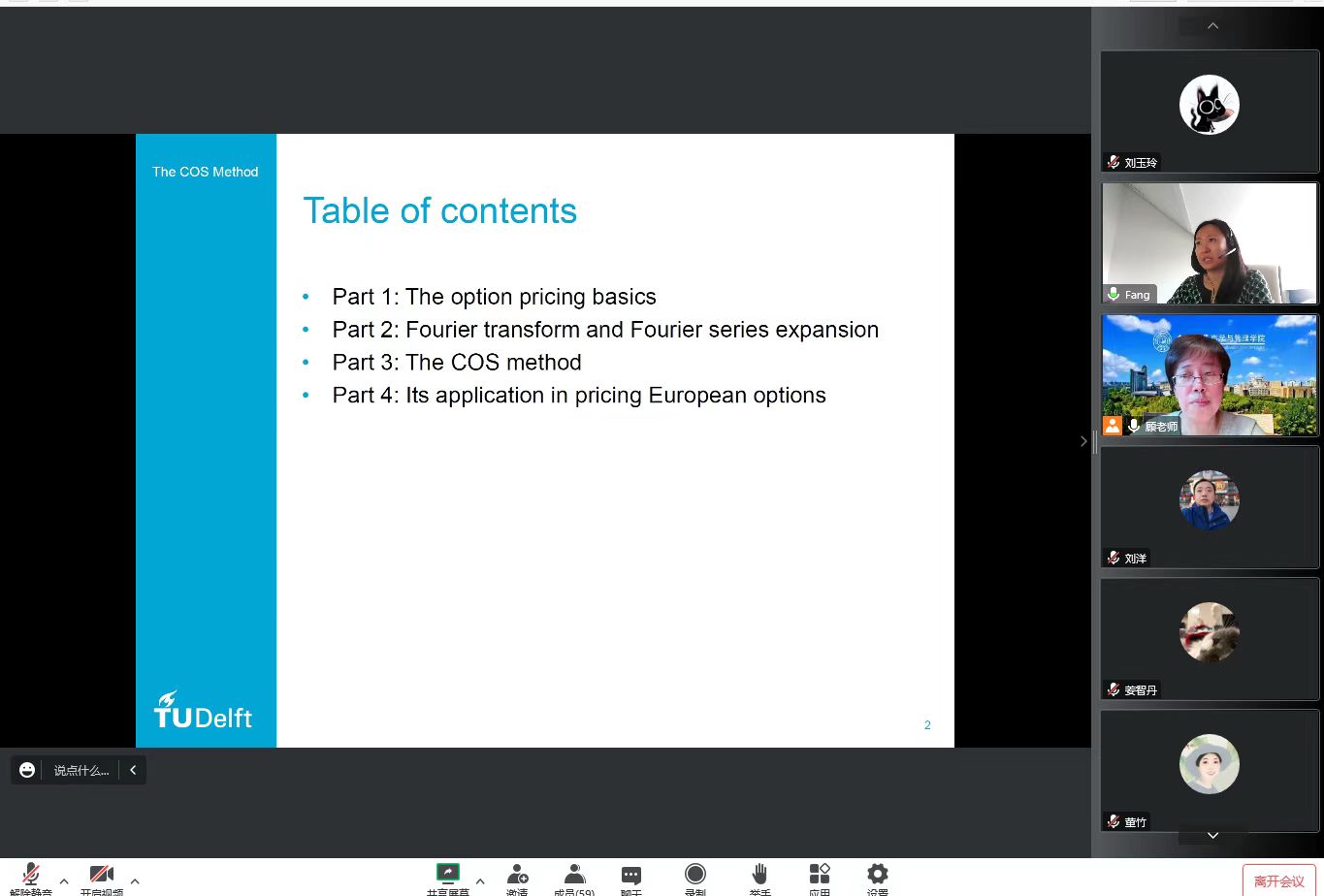 2022年10月26日,吉林大学商学与管理学院海外学者系列讲座第十八场如期进行。本次讲座由商学与管理学院应用金融系承办,邀请到了荷兰代尔夫特理工大学应用数学系方芳博士进行分享交流。讲座由应用金融系主任顾宁教授主持,应用金融系的各位老师、研究生及本科生等70余人参加了本次讲座。