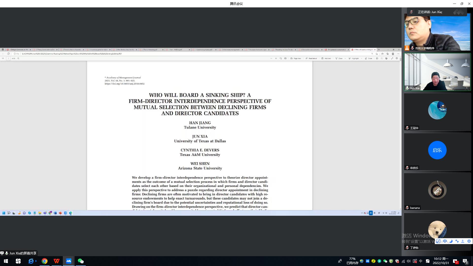 2022年10月31日,德克萨斯大学达拉斯分校Naveen Jindal商学院夏军教授受邀为我院师生带来两场学术讲座。讲座由市场营销系主任鞠晓伟教授主持。