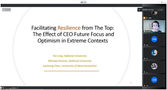 接下来,凌雁老师又将自己的另一个课题和与会者进行了分享,探讨了在极端条件下高层管理者提高公司的恢复能力的问题。分享完毕后,凌雁老师对老师和同学们感兴趣的问题也给出了自己的回答和意见,讲座气氛和谐融洽,形成了浓郁的学术氛围。