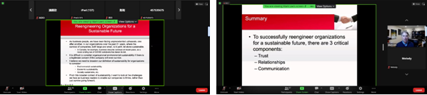 第五十场讲座由组织与战略管理系承办,马丽娜老师主持。讲座邀请到了加拿大Trinity Western Universtiy的 Mark Lee教授进行分享,主题为“Reengineering Organizations for a Sustainable Future” 。讲座通过zoom平台线上进行,吉林大学商学与管理学院20级工商管理专业全体学生及部分研究生和老师共同聆听了分享,并与Mark Lee教授展开了热烈的讨论。