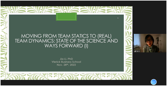 接下来,李嘉老师和与会者分享了自己关于团队多样性方面的研究成果,基于动态团队多样性理论(DTDT)探讨了团队成员专业领域多样性、性别多样性以及团队结构多样性在动态背景下对团队绩效的影响。