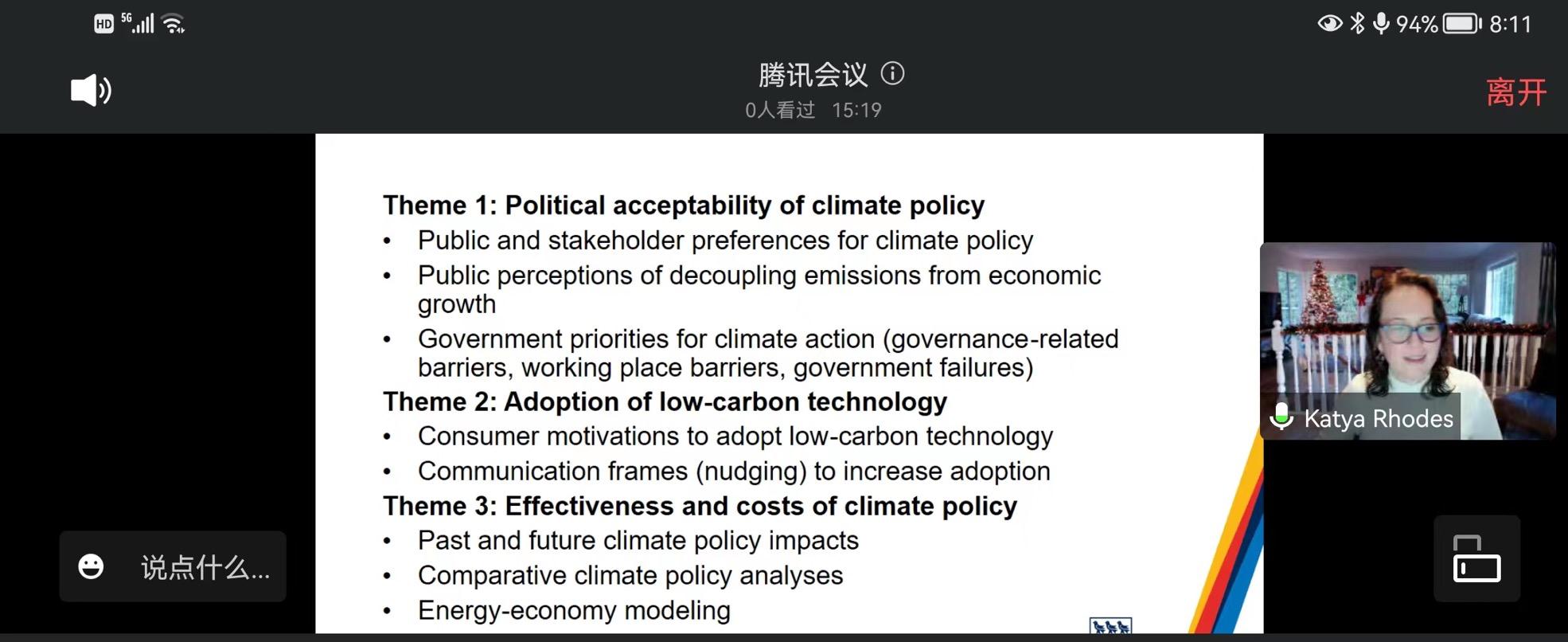 本场讲座题目为“Saving the world-A Simple Path to Success”。讲座开始,Katya Rhodes教授首先介绍了气候变化下deep decarbonization的重要性及面临的挑战,其后结合California和British Columbia的案例研究分享了针对气候变化可以采取的政策措施和行动方案。