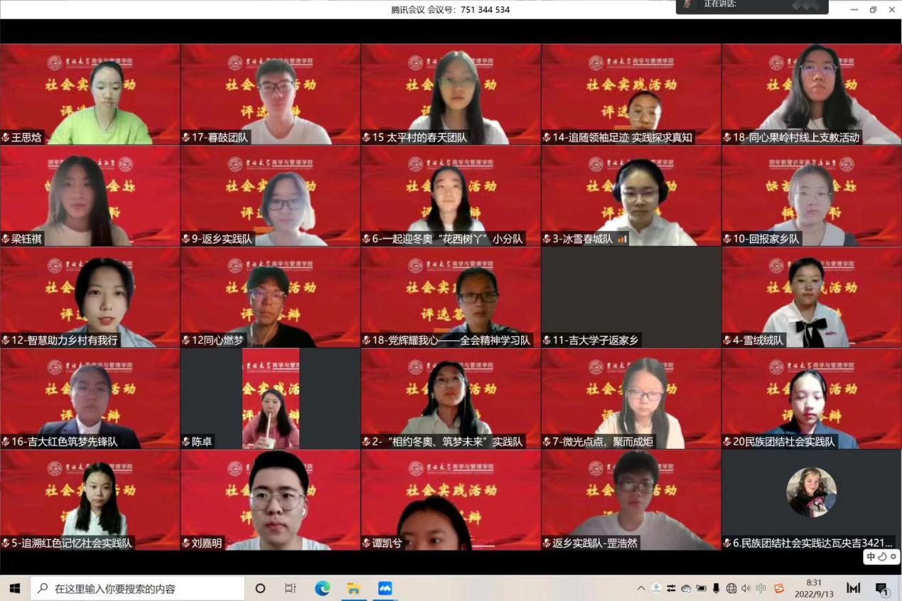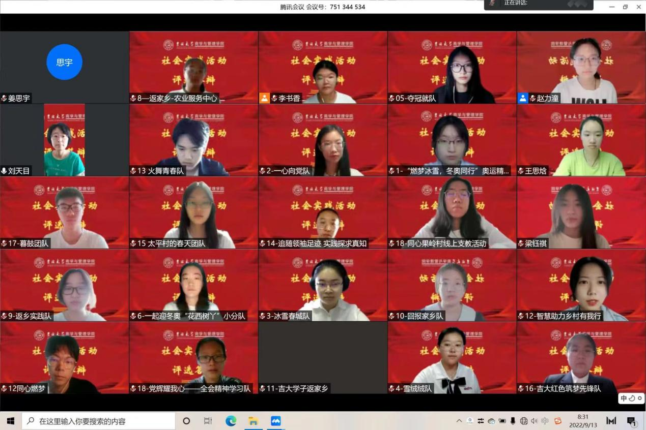 为更好地学党史,感党恩,听党话,跟党走,提升青年学子感知国情,服务社会能力,按照校团委要求,学院于暑期组织开展了2022年假期社会实践活动。为近一步总结经验,鼓舞先进,扩大影响,学院于近期开展了线上暑期社会实践活动评比大会。会议由学院团委社会实践部主持,学院学办主任兼2021级本科学生辅导员丁越老师、学院团委书记兼2020级本科学生辅导员刘天目老师、2019级本科学生辅导员陈卓老师、2019级本科学生辅导员刘翔宇老师、2022本科学生辅导员李毓老师、2020级本科学生辅导员禚传阳老师出席了本次会议。