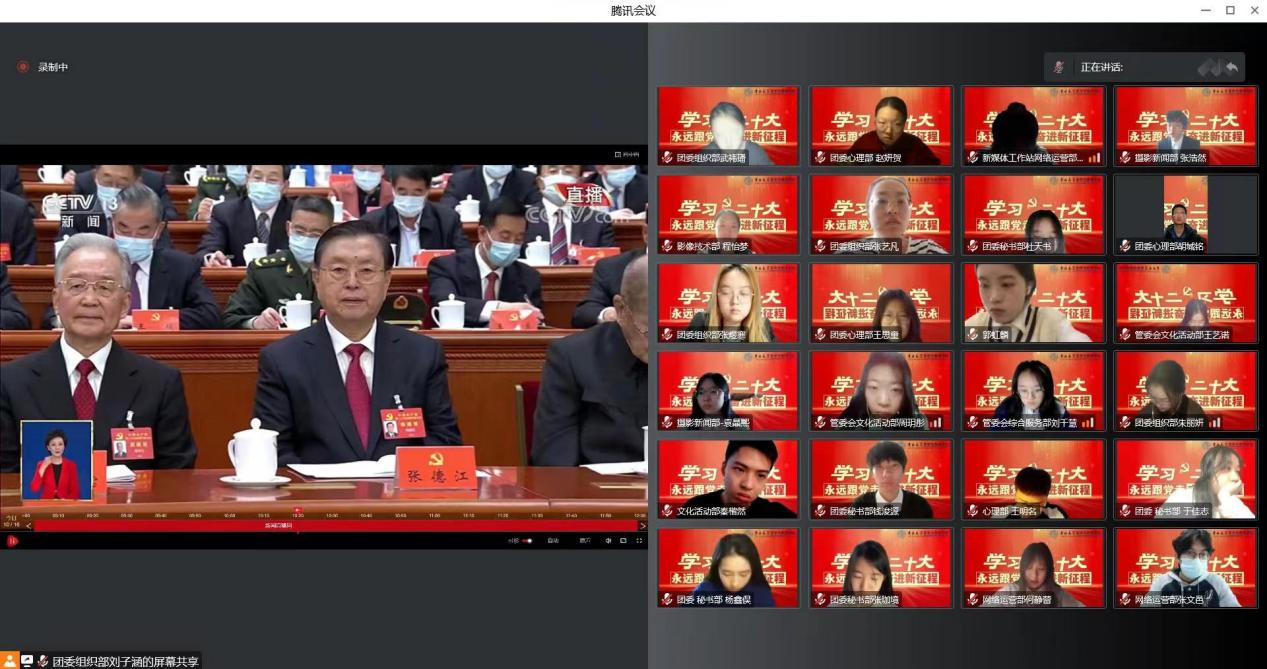 绘就梦想新蓝图,开启伟大新事业。举世瞩目的中国共产党第二十次全国代表大会于10月16日上午10时准时在北京人民大会堂隆重开幕,商学与管理学院团委组织团学干部和全体团员于线上集体观看开幕式盛况。