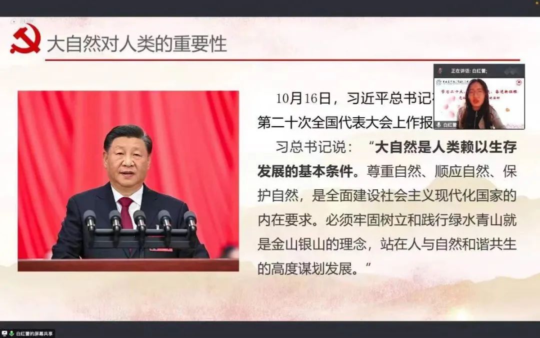 出席本次活动的学生宣讲代表分别有研究生宣讲代表周妍、桥宇航以及本科生宣讲代表赵芙、陈祝、罗小杰、白红蕾、勒鹏飞和田雨桐。宣讲代表们针对党的二十大精神,从六个基本模块以及两场演说出发,带领孩子们结合时代背景,体悟党的伟大思想。