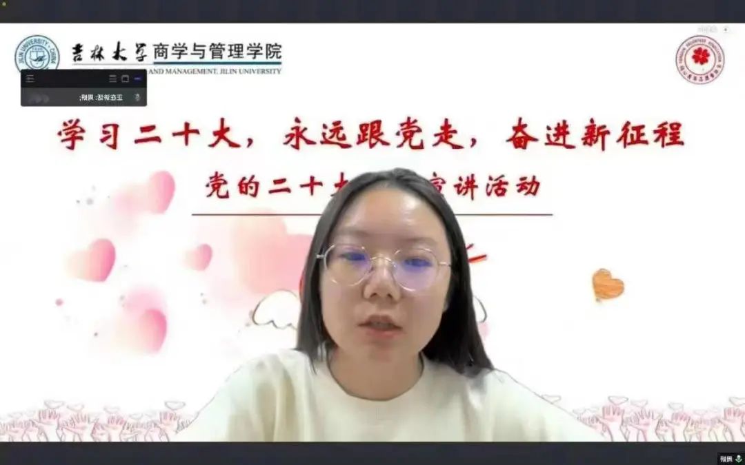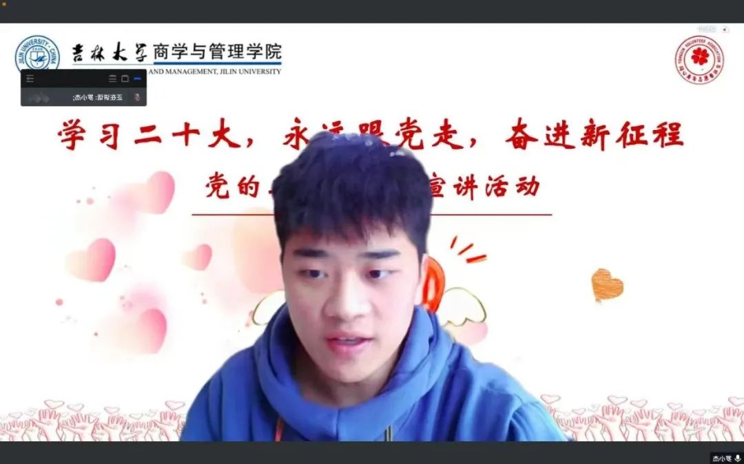 为深入贯彻党的二十大精神,带动青少年学习并深化对党的二十大精神的认识,坚持把学习贯彻党的二十大精神作为青少年的“必修课”和“首修课”,培养青少年成为“有理想、敢担当、能吃苦、肯奋斗”的新时代好青年。基于此,吉林大学商学与管理学院同心志愿者协会于11月17日与明德小学在线上联合举办了“学习二十大,永远跟党走,奋进新征程”党的二十大精神宣讲活动。