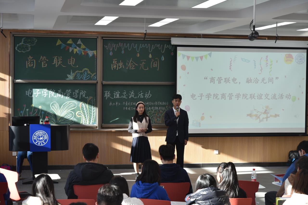 为提升学生凝聚力,培养团队精神,促进学院之间交流合作,2022年11月20日上午九时,商学与管理学院与电子科学与工程学院共同举行了“商管联电,融洽无间”的联谊活动,商学与管理学院团委副书记孙玖贺、王艺睿,商学与管理学院团委委员张弛,商学与管理学院团委社会实践部部长胡欣然、谭凯兮,电子科学与工程学院团委副书记凃懿桓,电子科学与工程学院团委实践部部长石靖祯出席了本次活动。