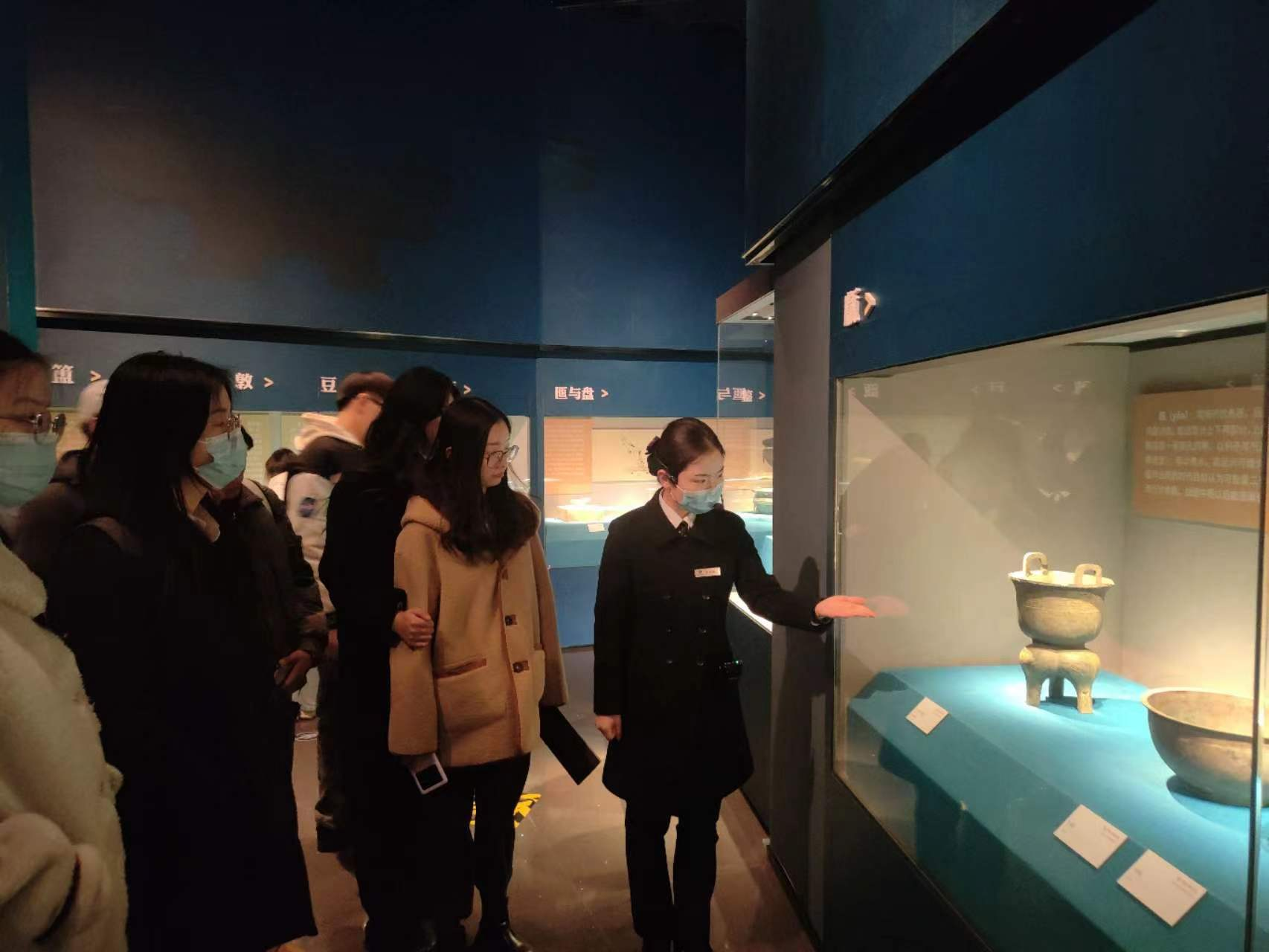 来到展馆后,在讲解员的带领下,同学们参观了“风物暇年”“春和景明”两个主题藏馆,其中“风物暇年”主题又分为“礼序”“戎马”“岁月”“技艺”四个单元,一金一石,一字一物,在讲解员的解说下都变得生动起来,吸引着各位同学的目光,琳琅的展器集历史、艺术与社会发展于一体展现在大家面前。吉林大学考古与艺术博物馆现有旧石器时代、新石器时代、青铜时代、汉唐、辽金、明清直至近现当代各个历史时期的陶瓷器、玉石器、金银器、骨器、金属器等,是反映历史发展的珍贵实物资料。同时,博物馆是人类社会历史文明的重要载体,也是认识过去、思考现在、展望未来的重要文化场所。