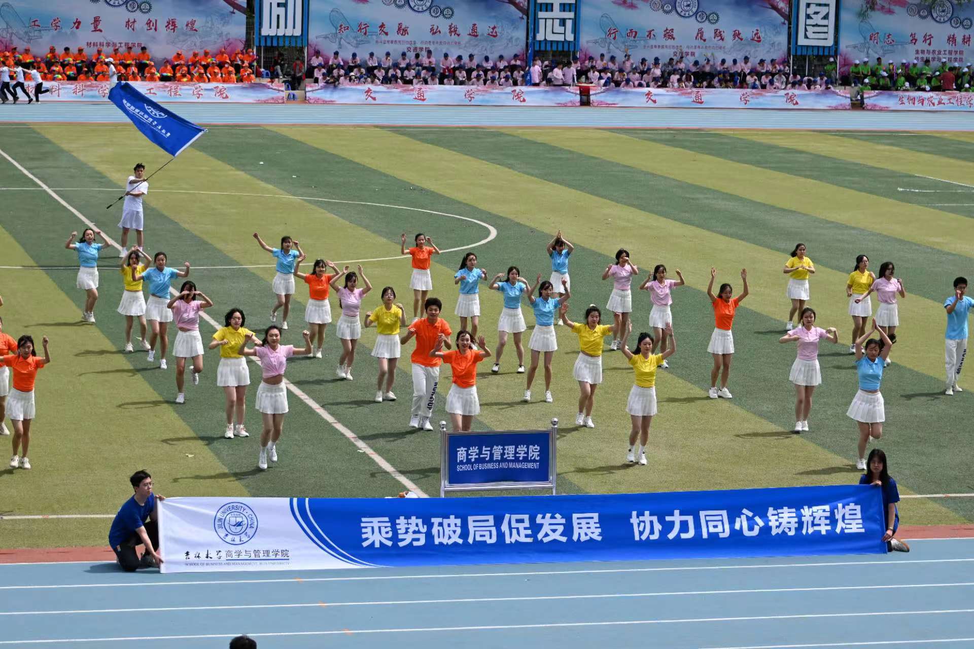 14:40分,最后一项女子旱地龙舟的赛场上,商管健儿们骑在“龙舟”上,以脚为桨,以手为舵,人舟共进,英姿飒爽,向着终点前进。在比赛中充分展现了商管人同心携手,踔厉奋发的品质,也彰显了良好的团队精神和合作意识。商管健儿也顺利完赛,取得了优异成绩。