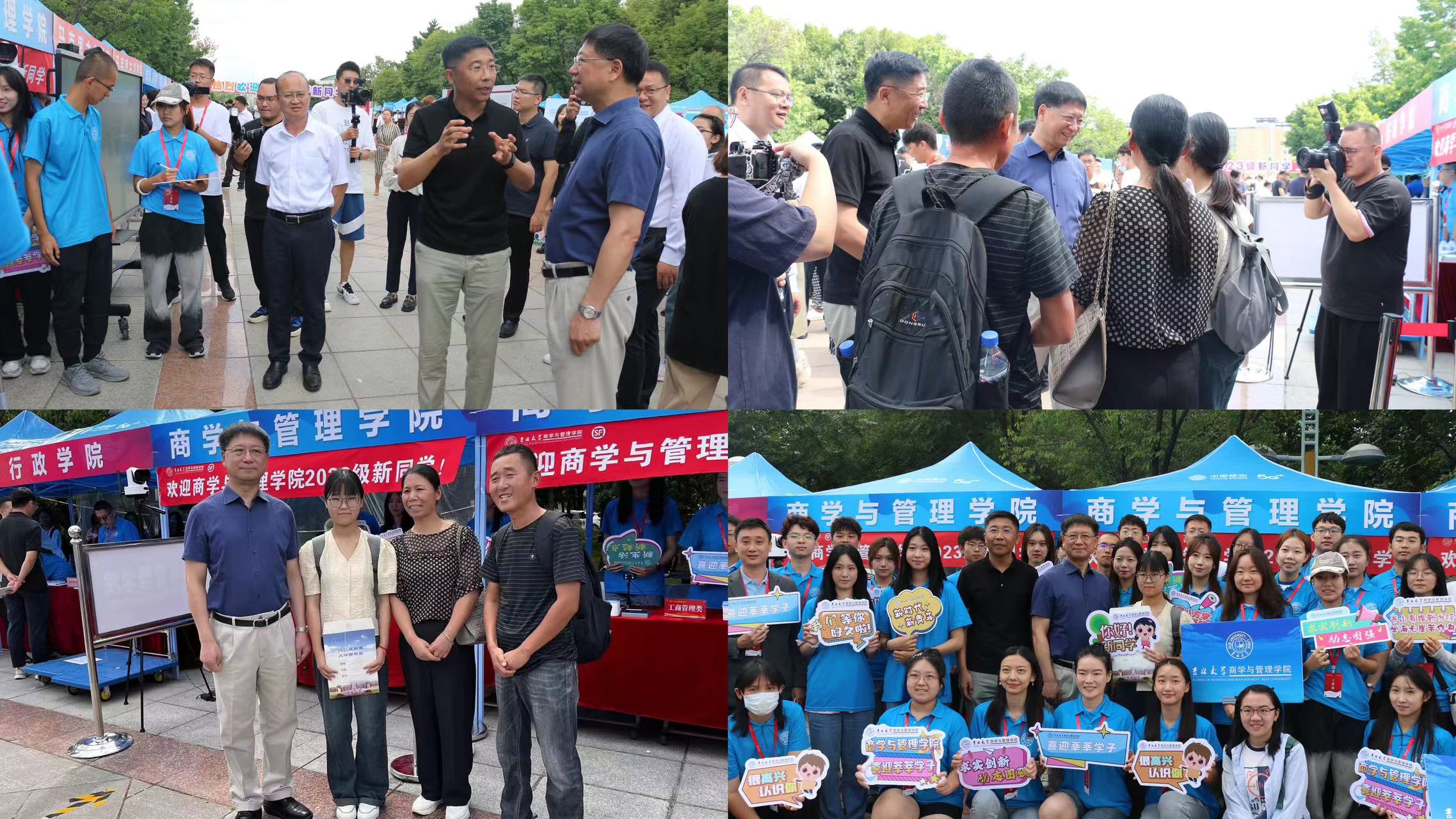 2023年8月26日,迎新工作进入第二天,上午10点,吉林大学校长张希莅临商学与管理学院迎新点,看望迎新志愿者及2023级报到新生。
