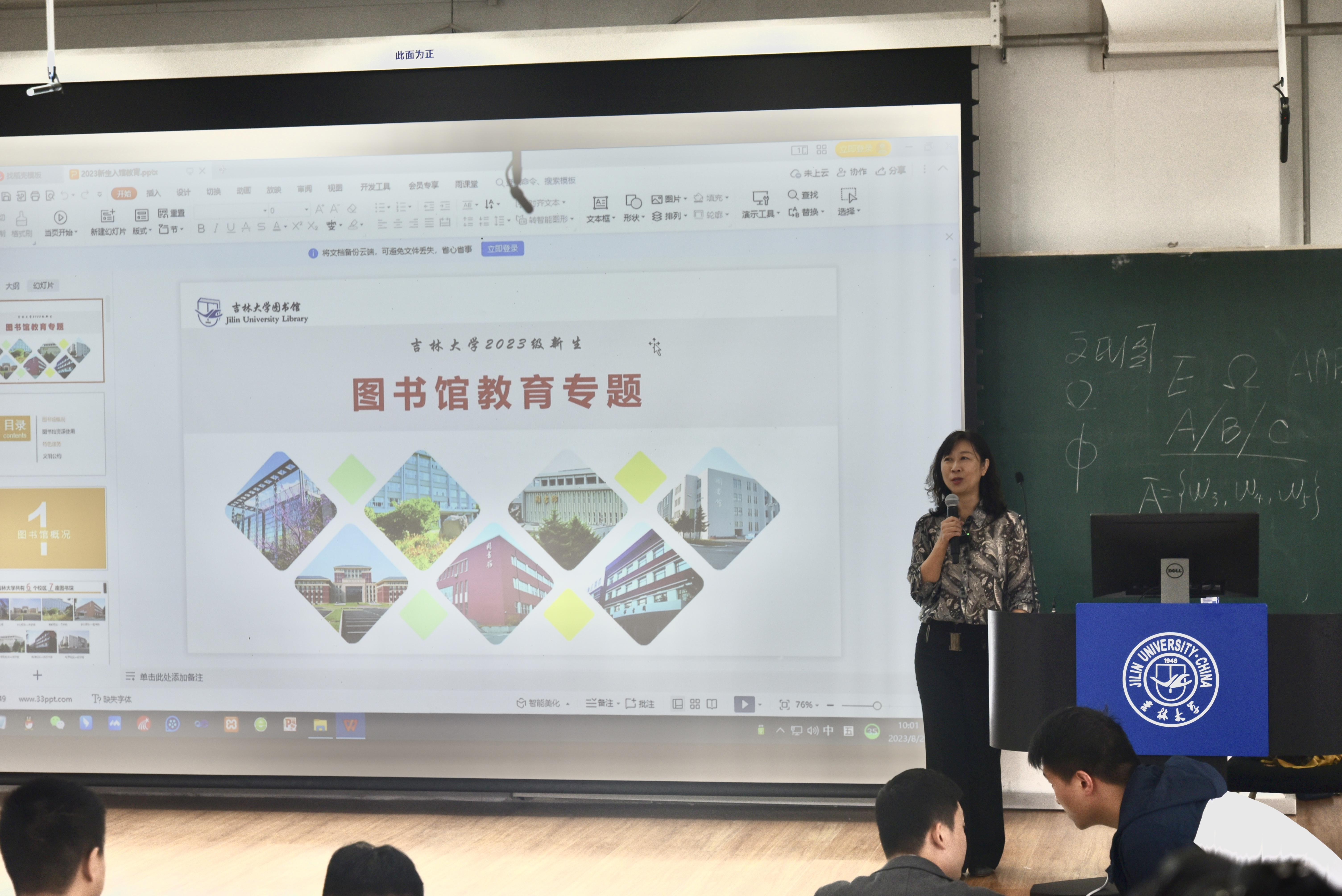 首先,吉林大学图书馆刘冲娇老师就图书馆概况、特色服务、文明公约等四个方面对吉林大学图书馆进行介绍。讲座过程中,刘老师结合精心准备的入馆课件为同学们介绍了吉林大学图书馆的概况、中心校区图书馆中的分类和功能区的划分。之后老师又播放了由学校拍摄的讲解视频,视频中为新生们演示了如何借阅图书、如何使用图书馆的数据库和文献查询系统以及跨校区跨馆借阅图书的流程,同时为视频中的部分内容做了细致的解释。
