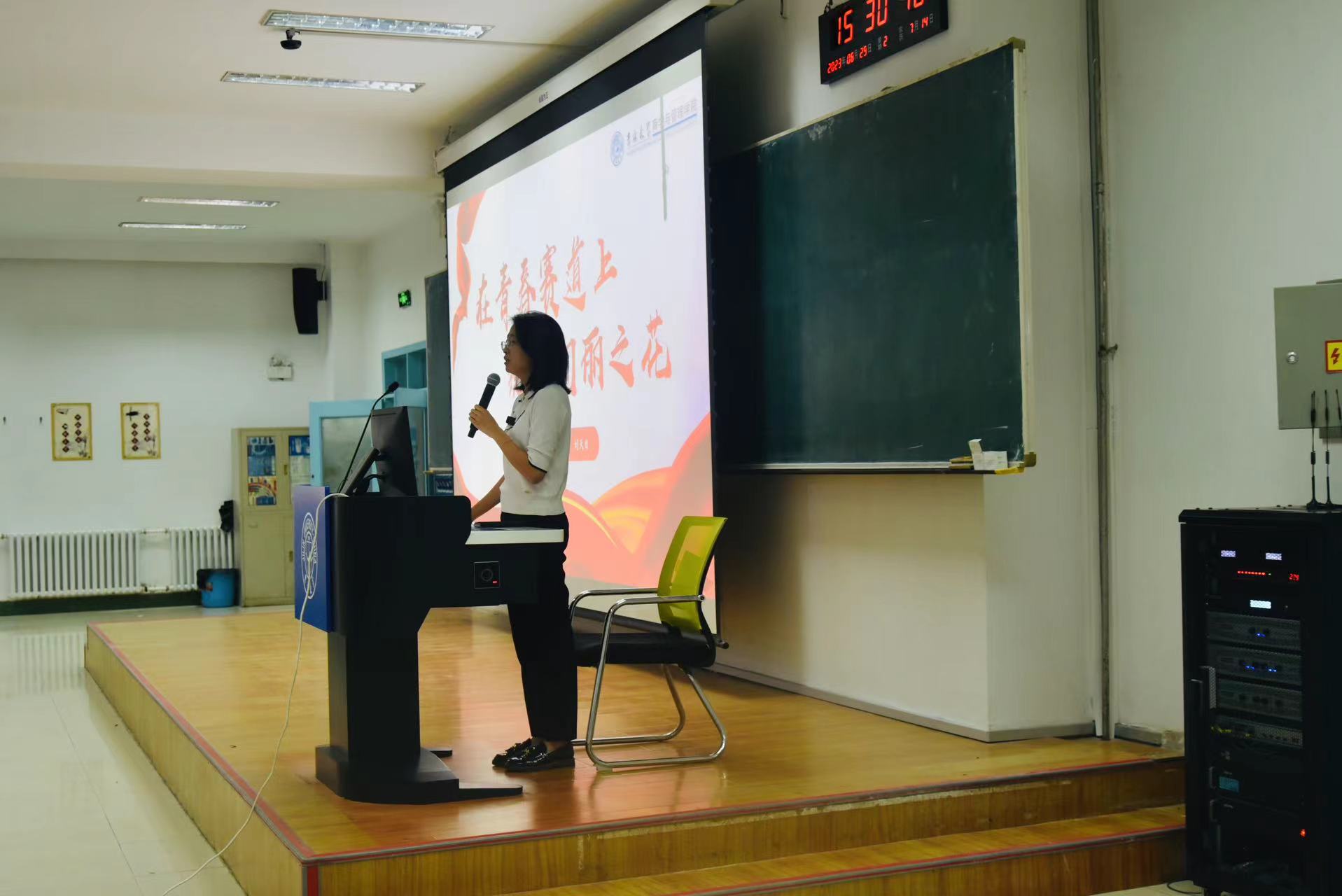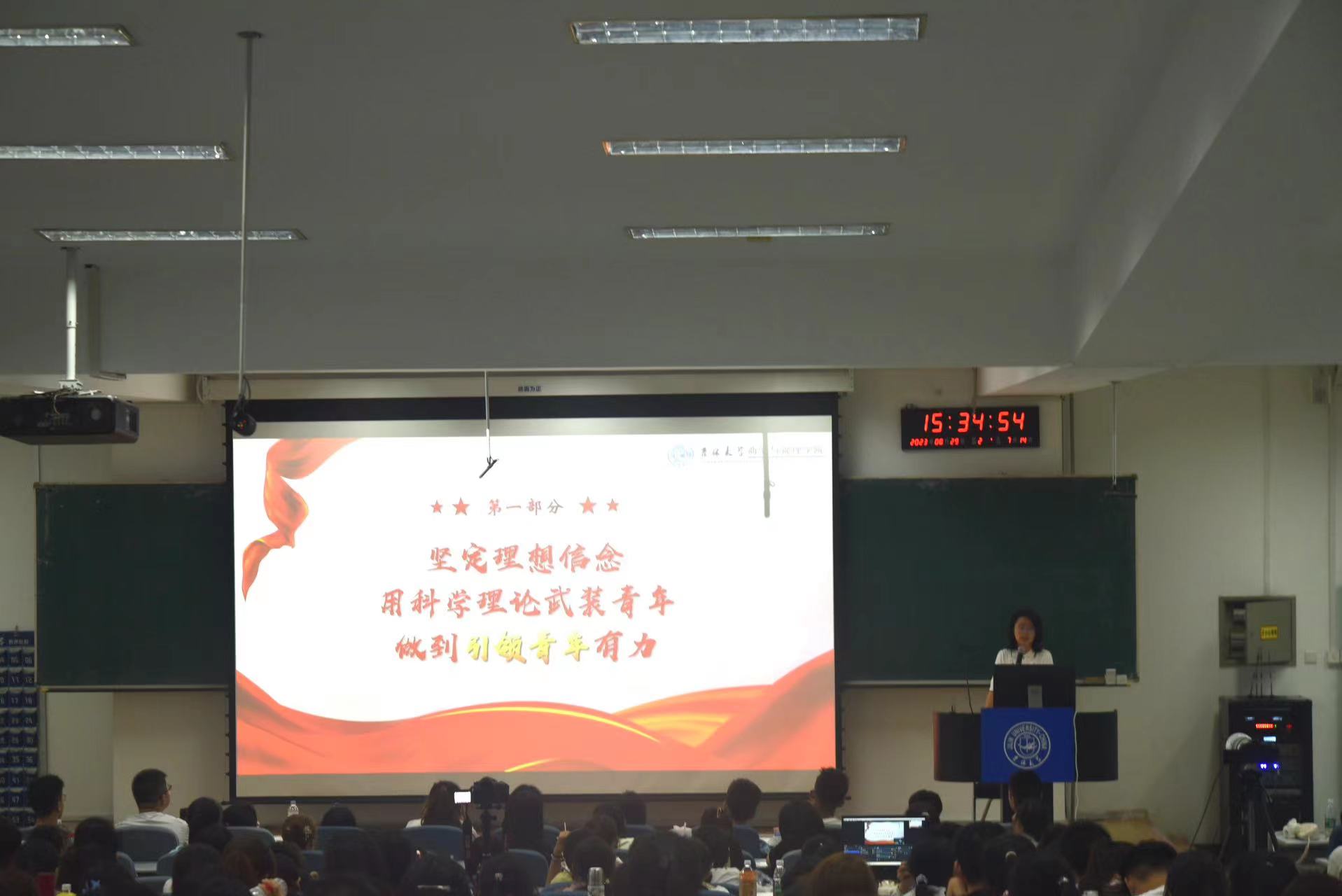 为增强2023级新生的团员意识,增进对团的认识与了解,吉林大学商学与管理学院团委书记兼2020级本科学生辅导员刘天目老师于2023年8月29日在三教第一阶梯教室对2023级新生进行了入学第一次团课的讲解。
