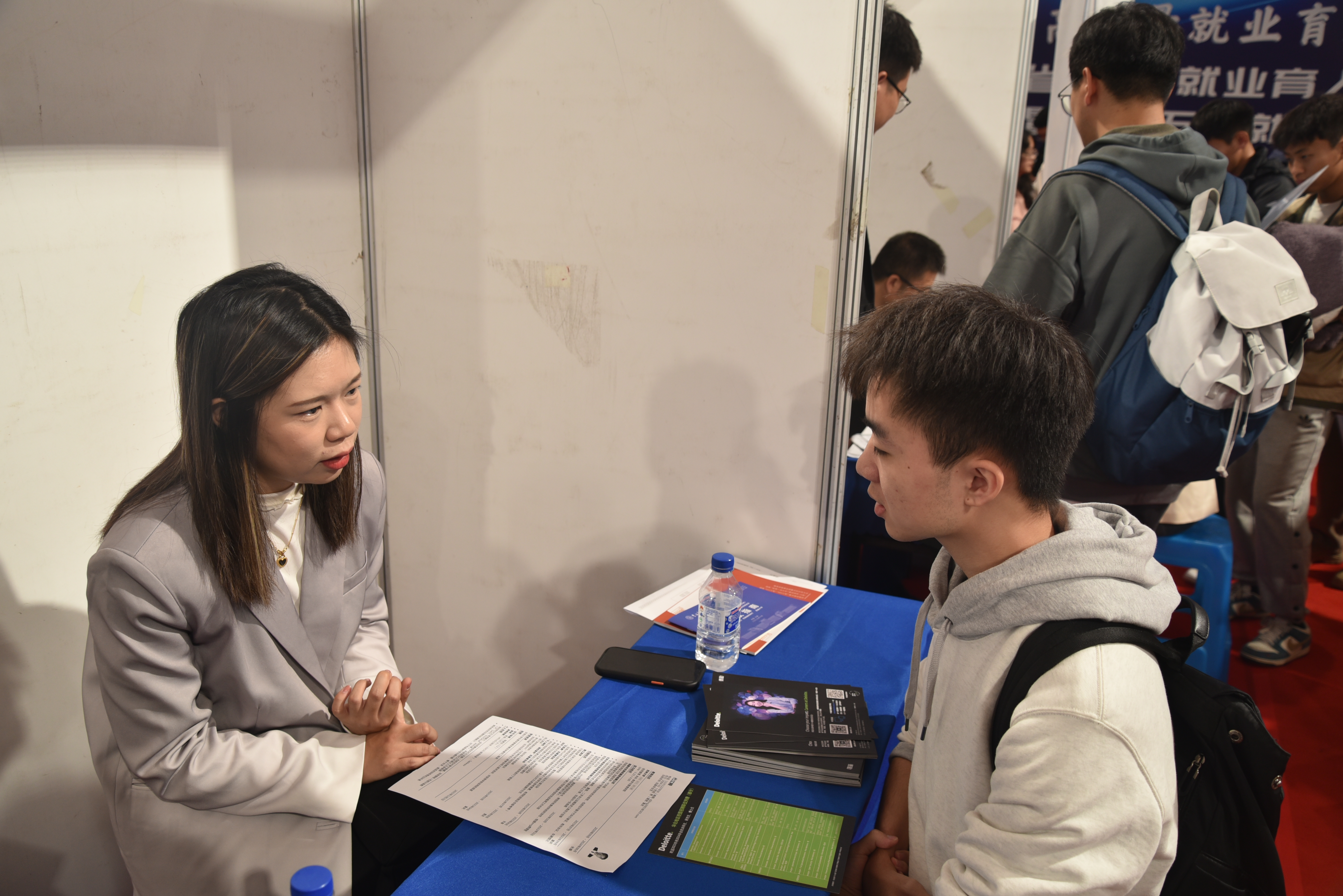 双选会上气氛热烈,盛况空前。赵军书记一行到招聘展位同招聘单位负责人和学生亲切交流。据悉,共来自全国28个省区市的840家招聘单位共提供近5万个岗位供毕业生选择,涵盖了金融,汽车,机械等多个领域。各企业代表纷纷来到现场,与心仪的毕业生面对面交流,希望通过此次双选会,将合适的人才纳入到公司。