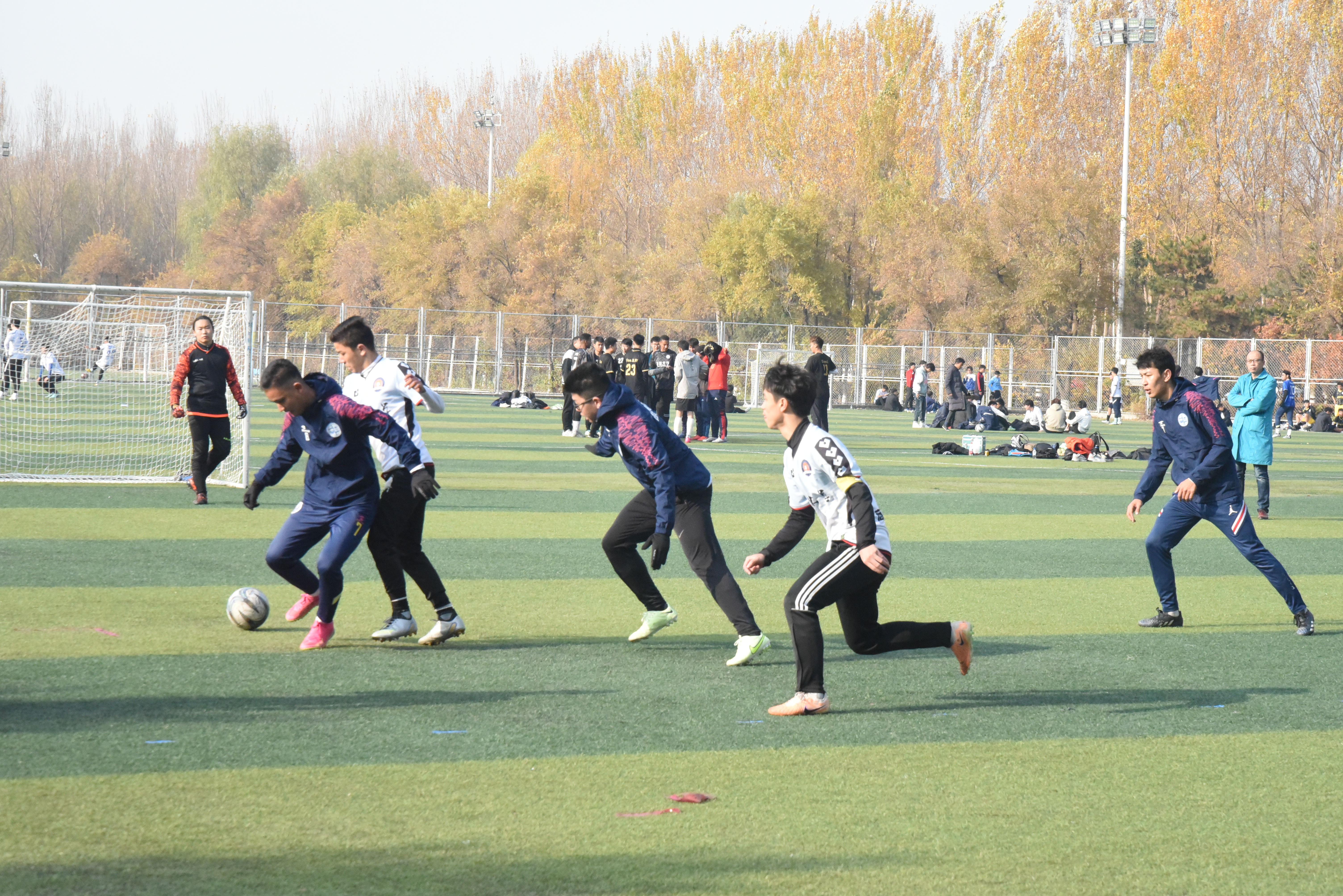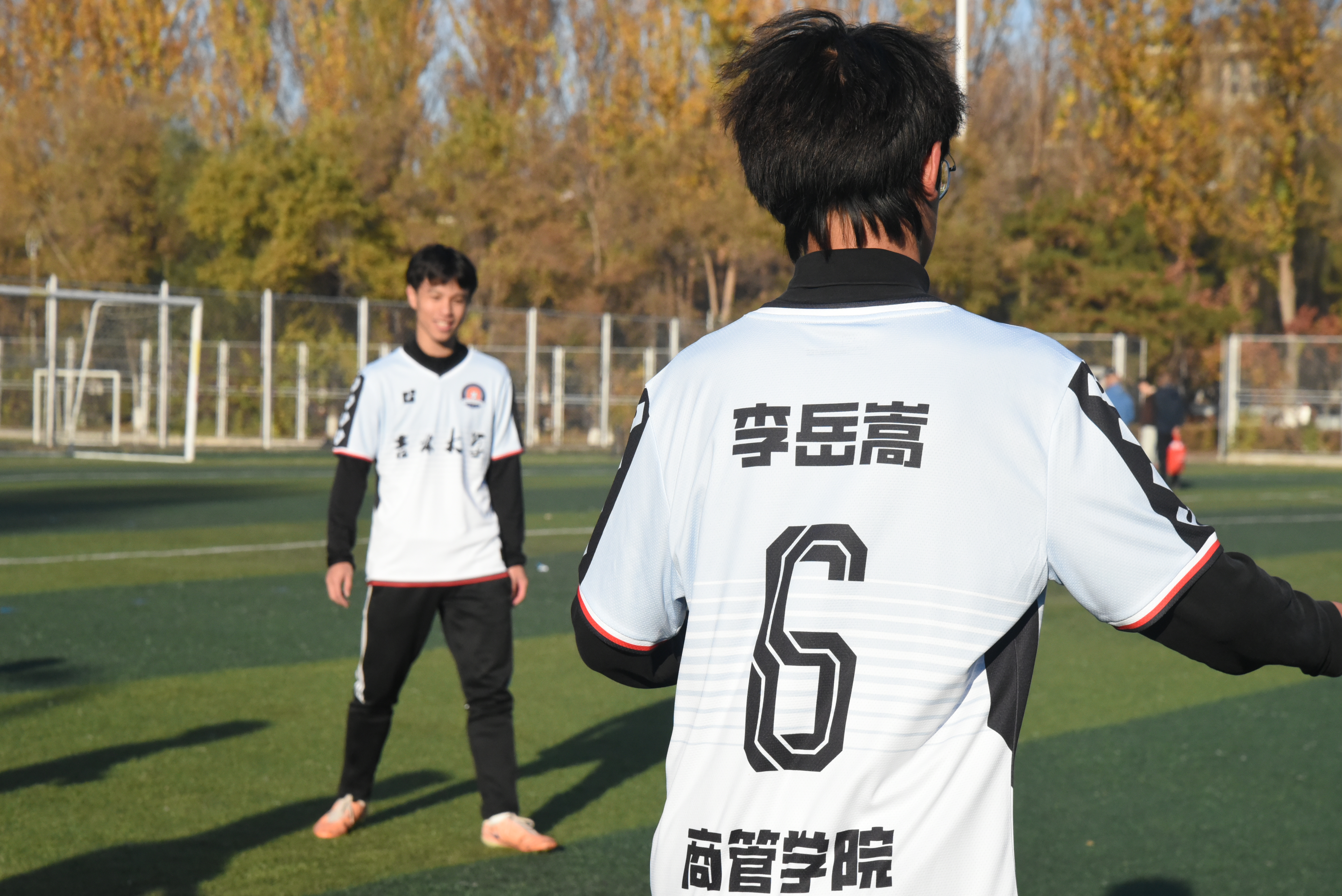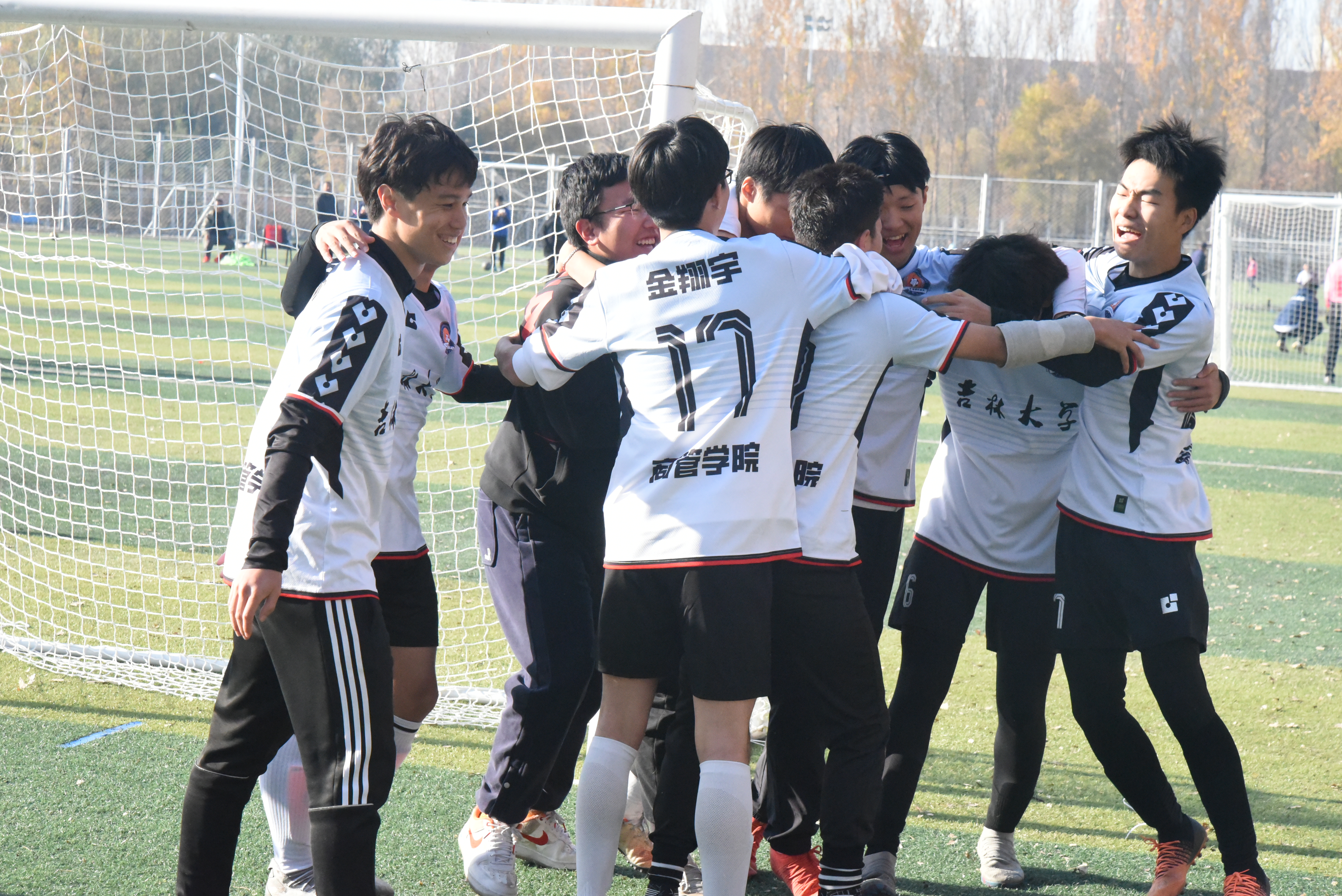 在第一轮抢位赛结束五分钟后,商管足球队就迎来了仪电学院的挑战。双方在上半场有来有回,打得你来我往、互不相让,焦灼的比赛也吸引了许多观众的目光。下半场易边再战,我方球员4号努尔建接8号库尔边路传中,打破僵局;一分钟后10号尹註圣送出妙传,库尔高高跃起,头球破门,扩大比分;两分钟后,林书高后场长传,造成对方后卫自摆乌龙,比分锁定在3:0。商管学院成功取得小组赛名额。