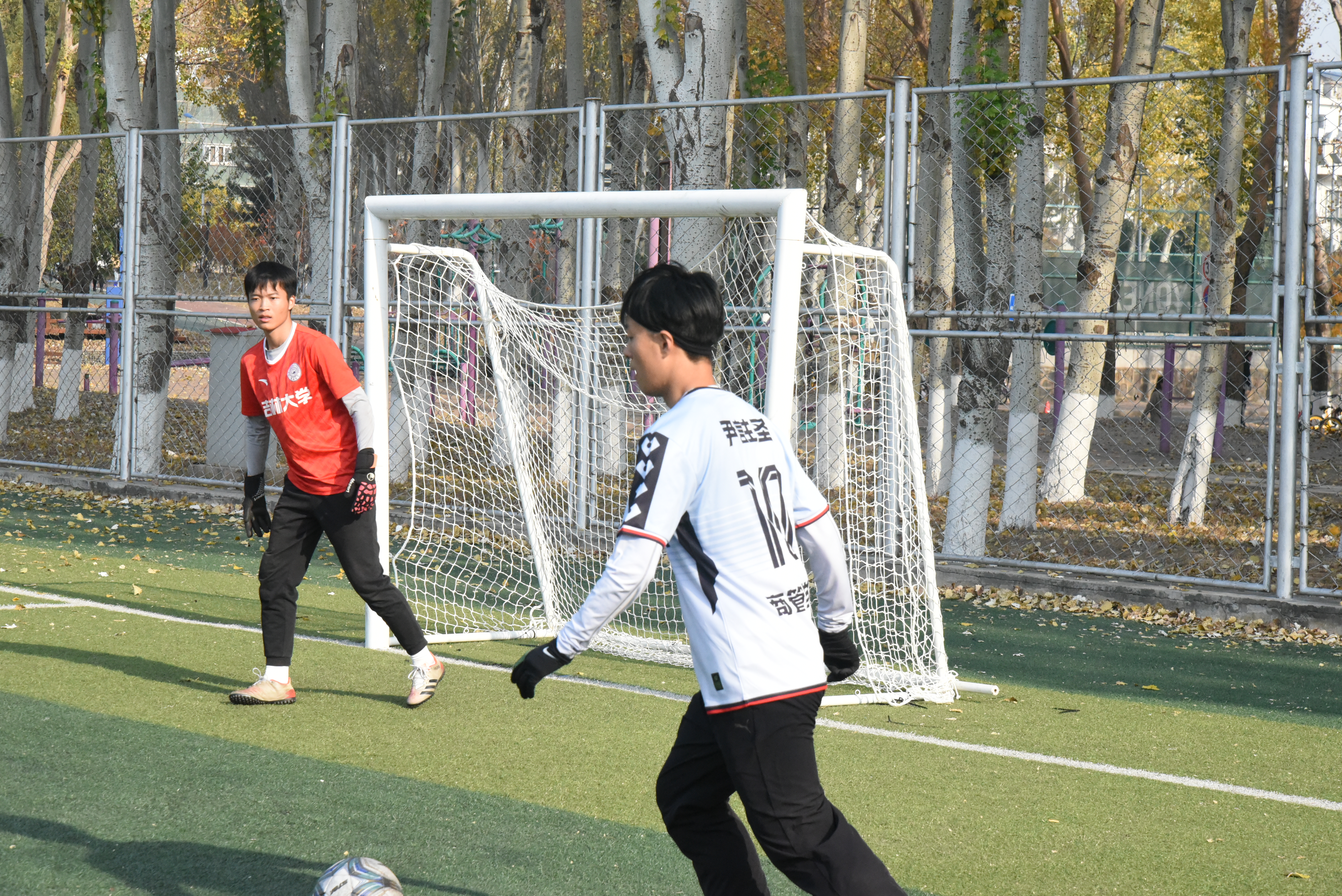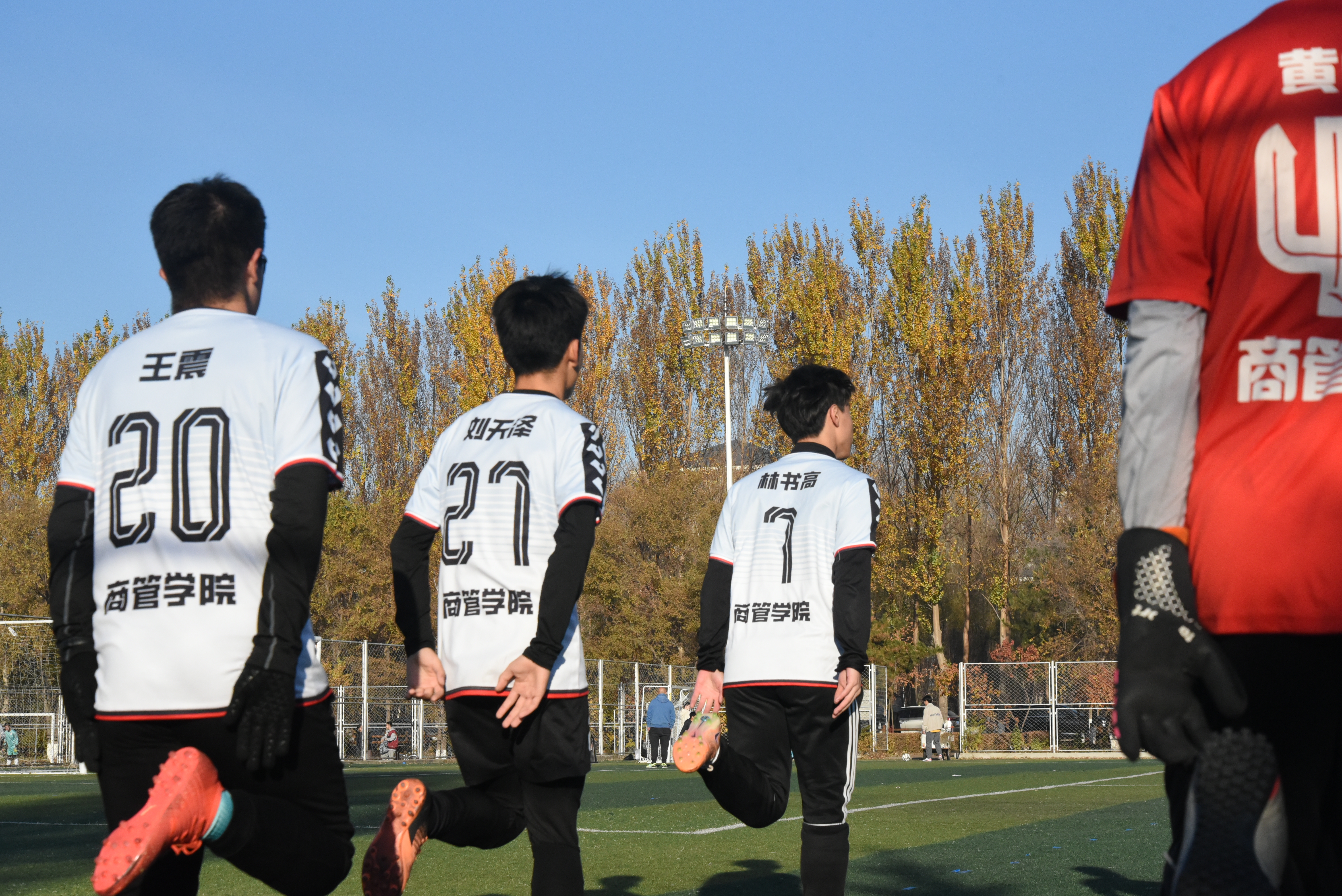 第一天的比赛荡气回肠,也让商管球员很好的调整了状态来面对接下来的对手。进入到淘汰赛阶段,面临实力相当的吉大三院,商管学院打出了自己的风格。吉大三院球风硬朗,跑位灵活,但商管学子用一次次的高效反击与吉大三院相抗衡。在比赛刚开始阶段,我方7号球员林书高抓住对方球员失误,单刀将球打进;随后,吉大三院用一脚精准的长传找到埋伏在禁区里的前锋球员,对方一记头球,将比分扳成1:1;下半场易边再战,我方10号球员精准的射门打在门将身上,折射入网,将比分反超;最后阶段,我方球员体能下降,被吉大三院顽强扳平,比赛进入到了点球大战阶段。在点球阶段,前五轮凭借林书高与门将黄中毅的出色发挥,双方打成平手,在第六轮点球,我方球员的射门被对方守门员化解。最终,商管学院遗憾输给了本次比赛的亚军队伍。