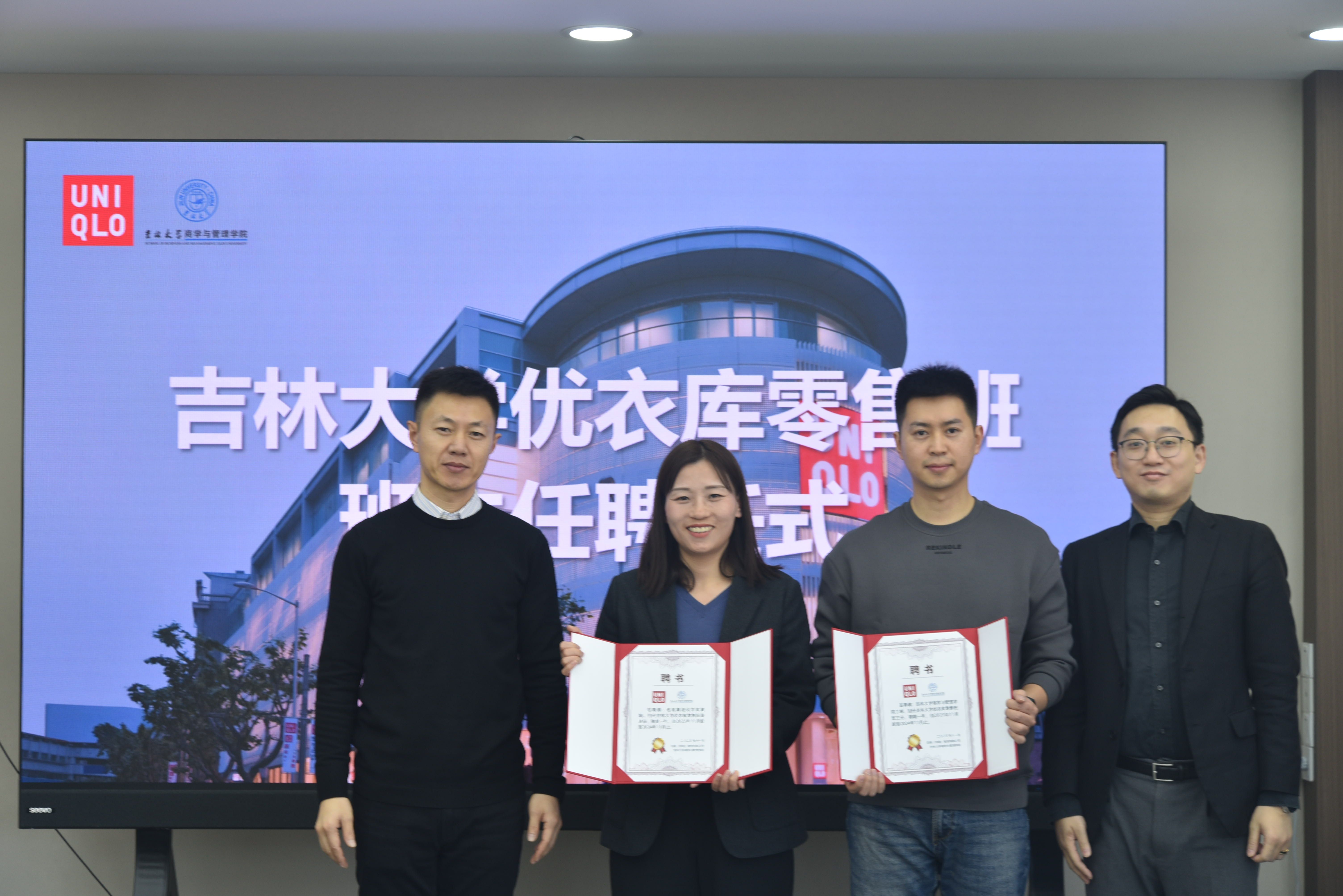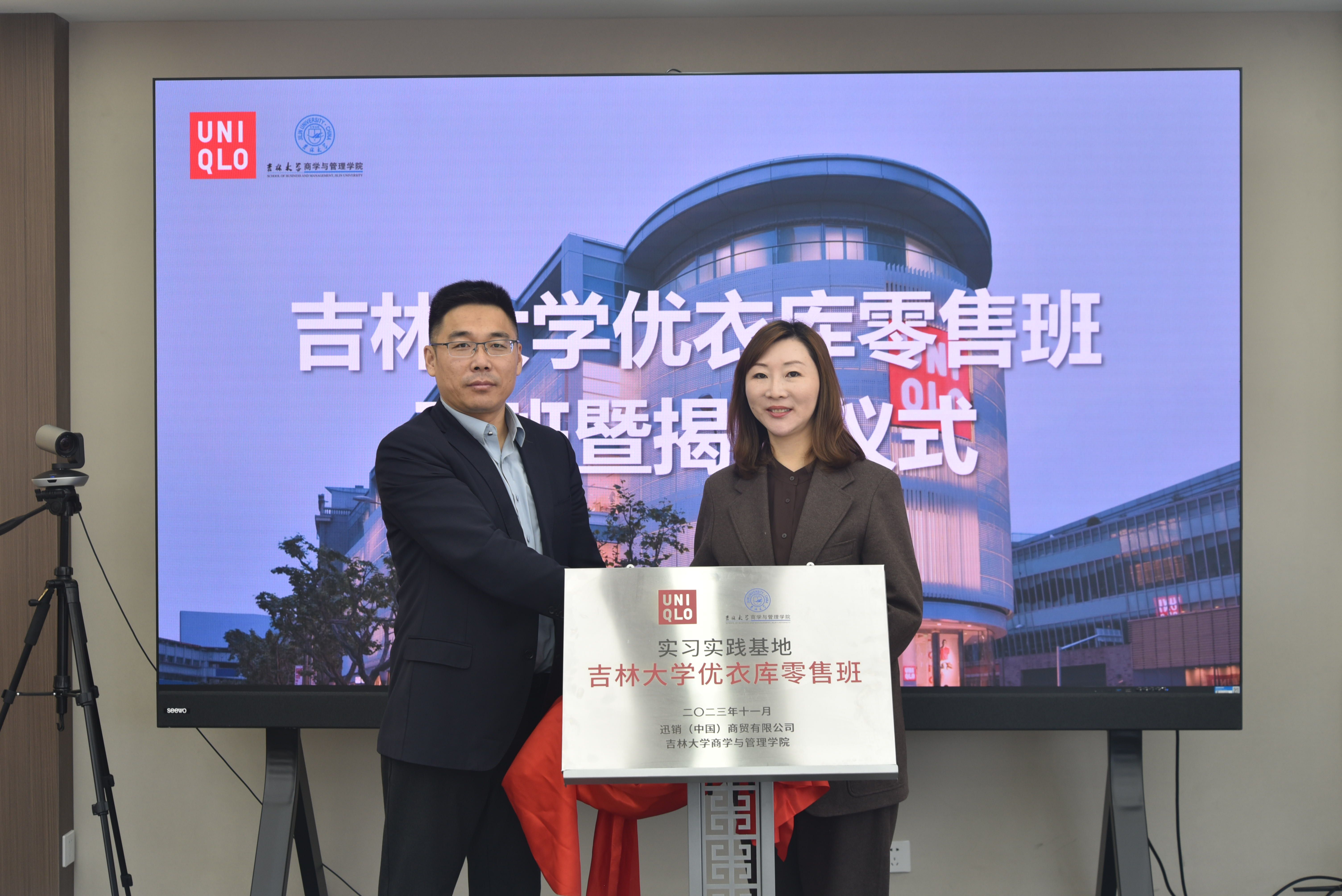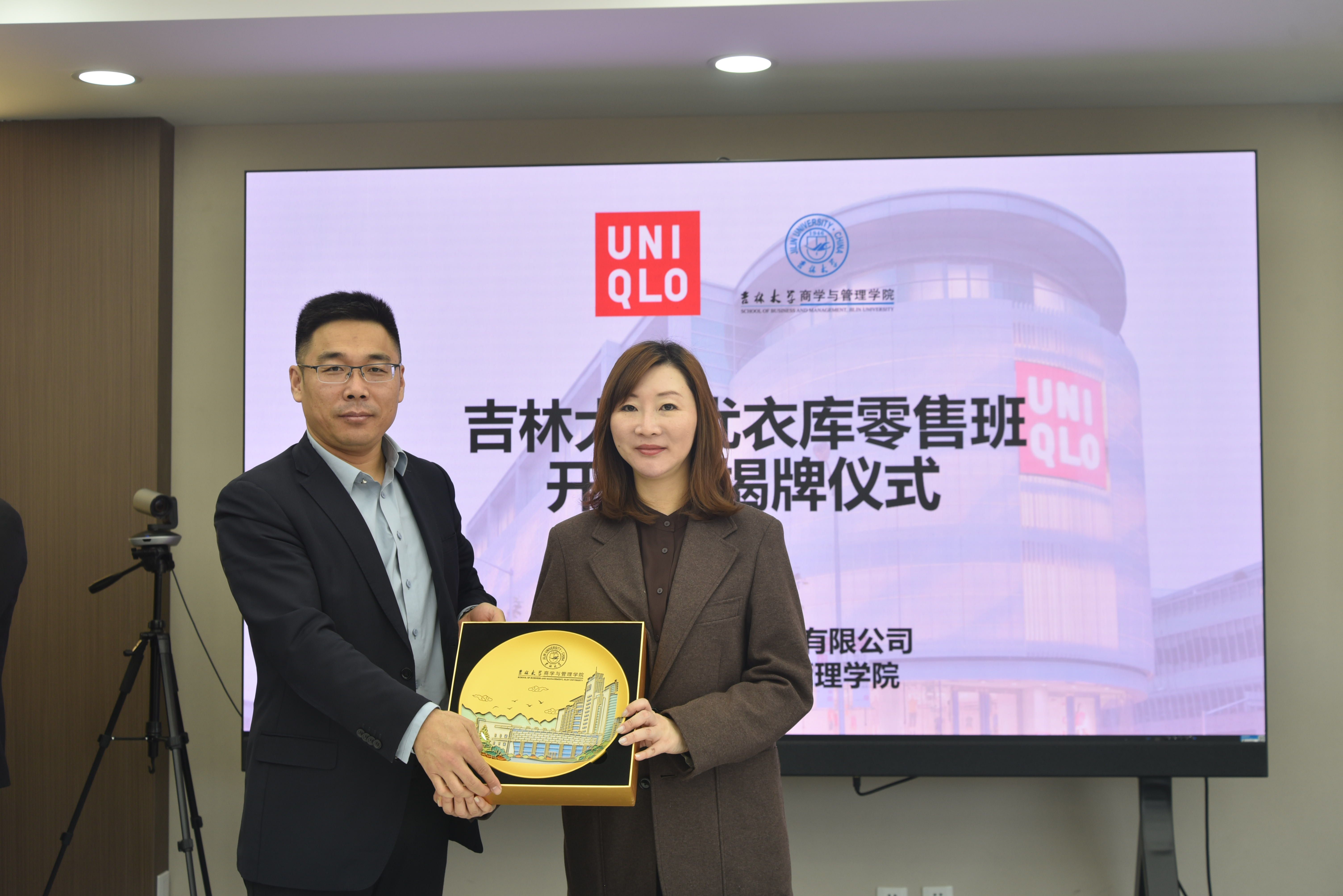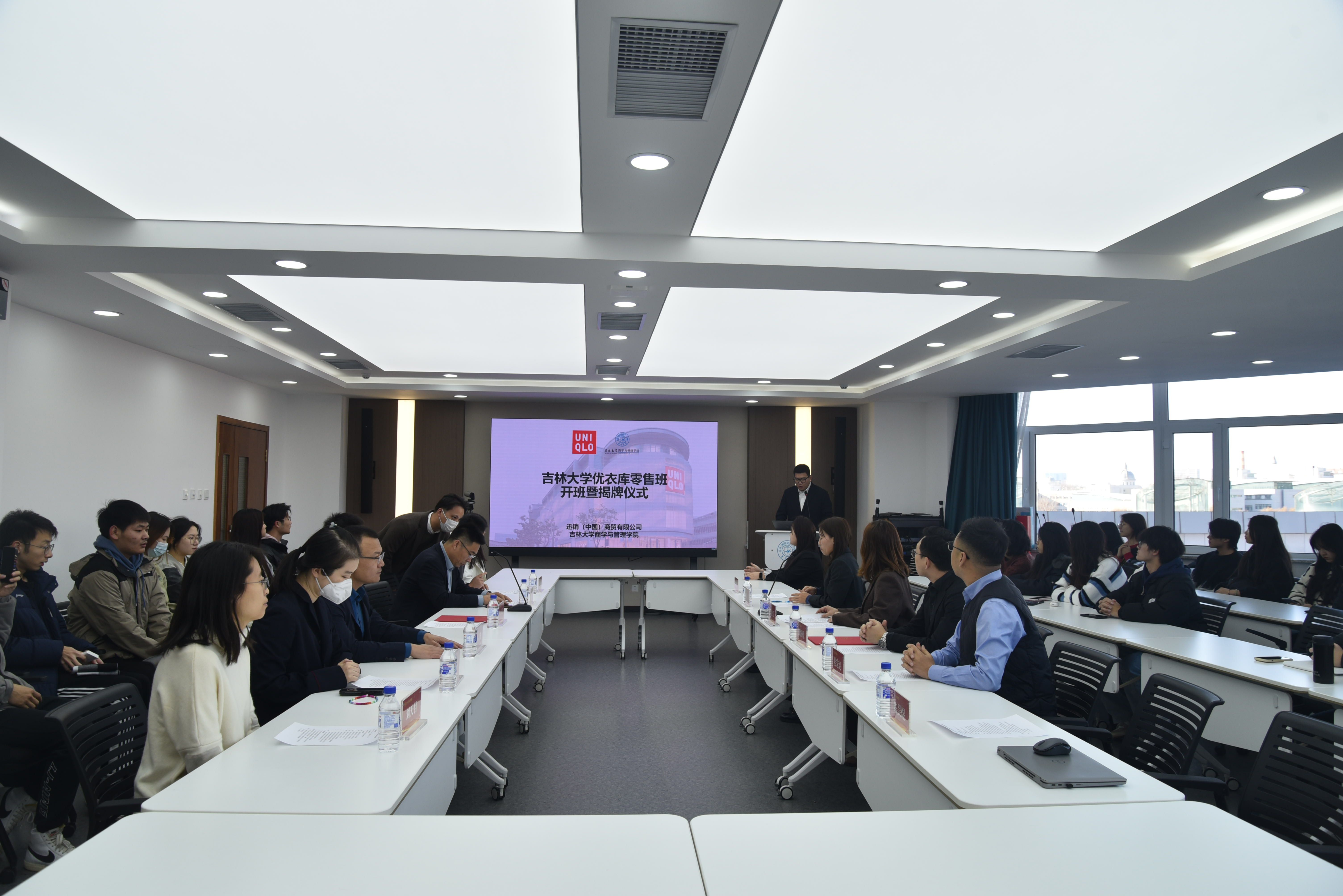 为培养学生就业观念,提升学生就业能力与实践水平,拓展国际视野,2023年11月30日下午13点30分,吉林大学优衣库零售班开班仪式正式启动。迅销优衣库首席人力资源官毛景弘女士、欧阳煌总监、黄娟经理、营业部东北大区负责人姜宏亮先生、HR陈昊煜先生、黄晟瑄女士;吉林大学党委学生工作部副部长马琨、商学与管理学院党委副书记兼副院长李帅、党委副书记马腾、研究生管理办公室主任甄宓、学生工作办公室主任丁越、团委书记刘天目参加了此次优衣库零售班开班暨揭牌仪式。