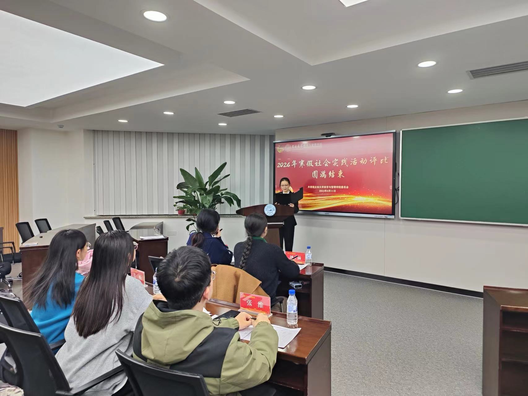 为相应党的号召,紧跟时代步伐,表彰在2024年寒假社会实践活动中表现突出的先进集体,个人及优秀组织单位,激励我院学子更加积极地投身于社会实践与志愿服务活动,商学与管理学院于3月11日下午14:00于东荣A606,对本次社会实践活动展开了评比工作。
