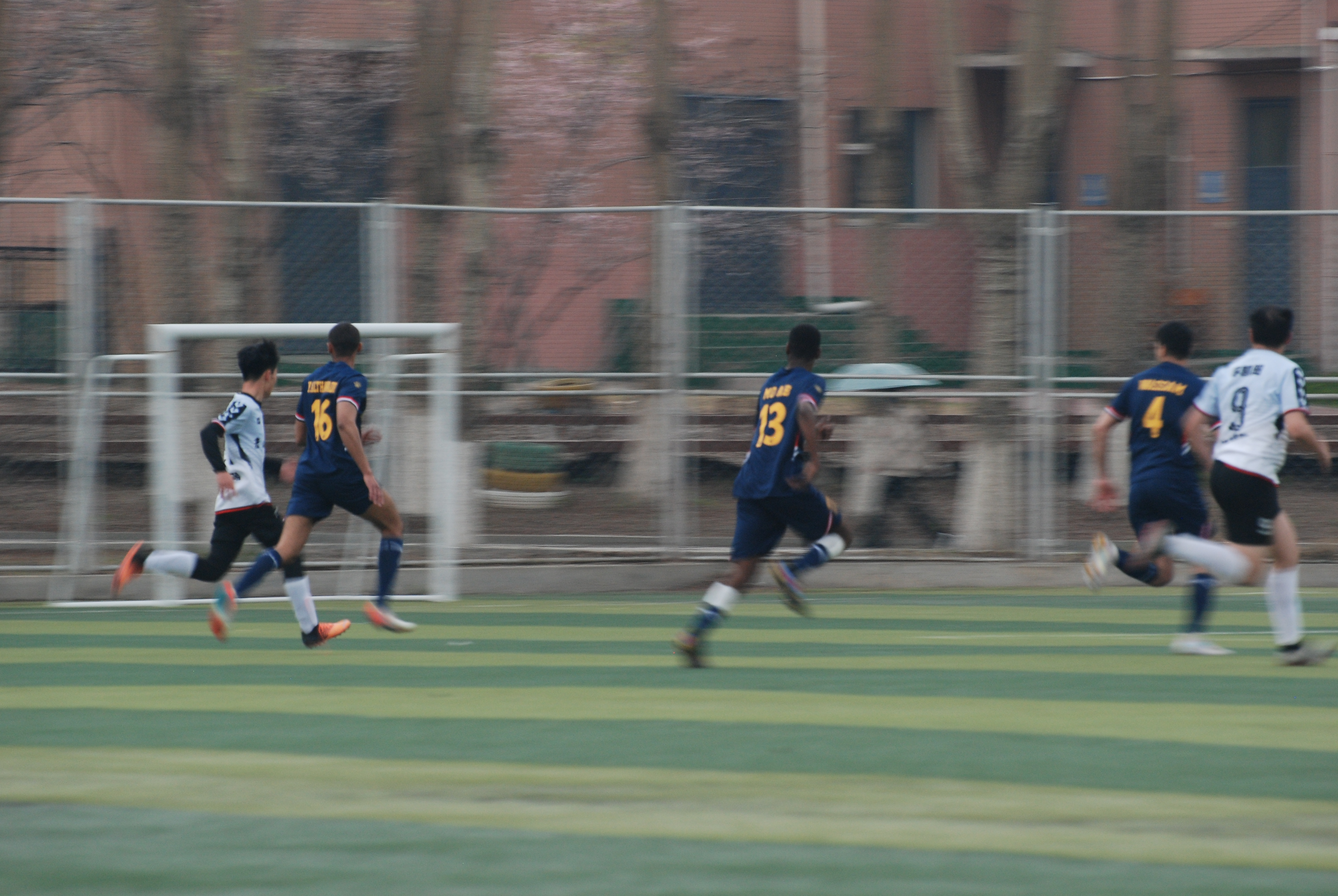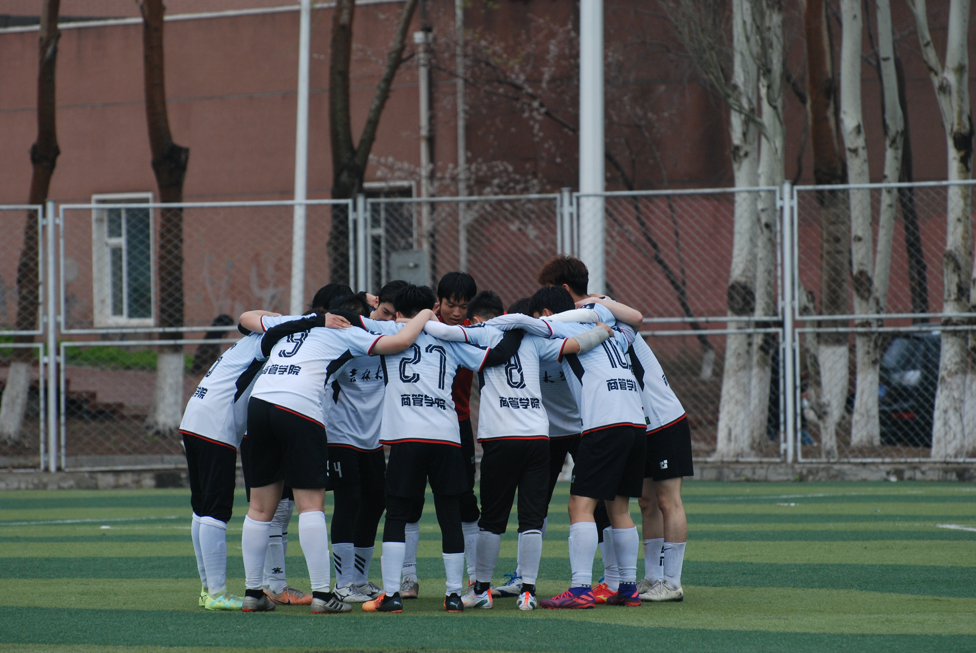 4月23日,商学与管理学院队面对去年的季军国际教育学院,在比赛第10分钟,27号刘天泽发起反击,由李凯阳先下一城,不久场上风云突变,对方7号连扳两球,下半场8号库尔多次突破对方后防线,造成两名队员红牌,奈何对方球员依靠身体优势通过定位球扩大比分。球队数次击中横梁门柱,最终1:3遗憾止步十六强,结束此次院系杯之旅,虽败犹荣。