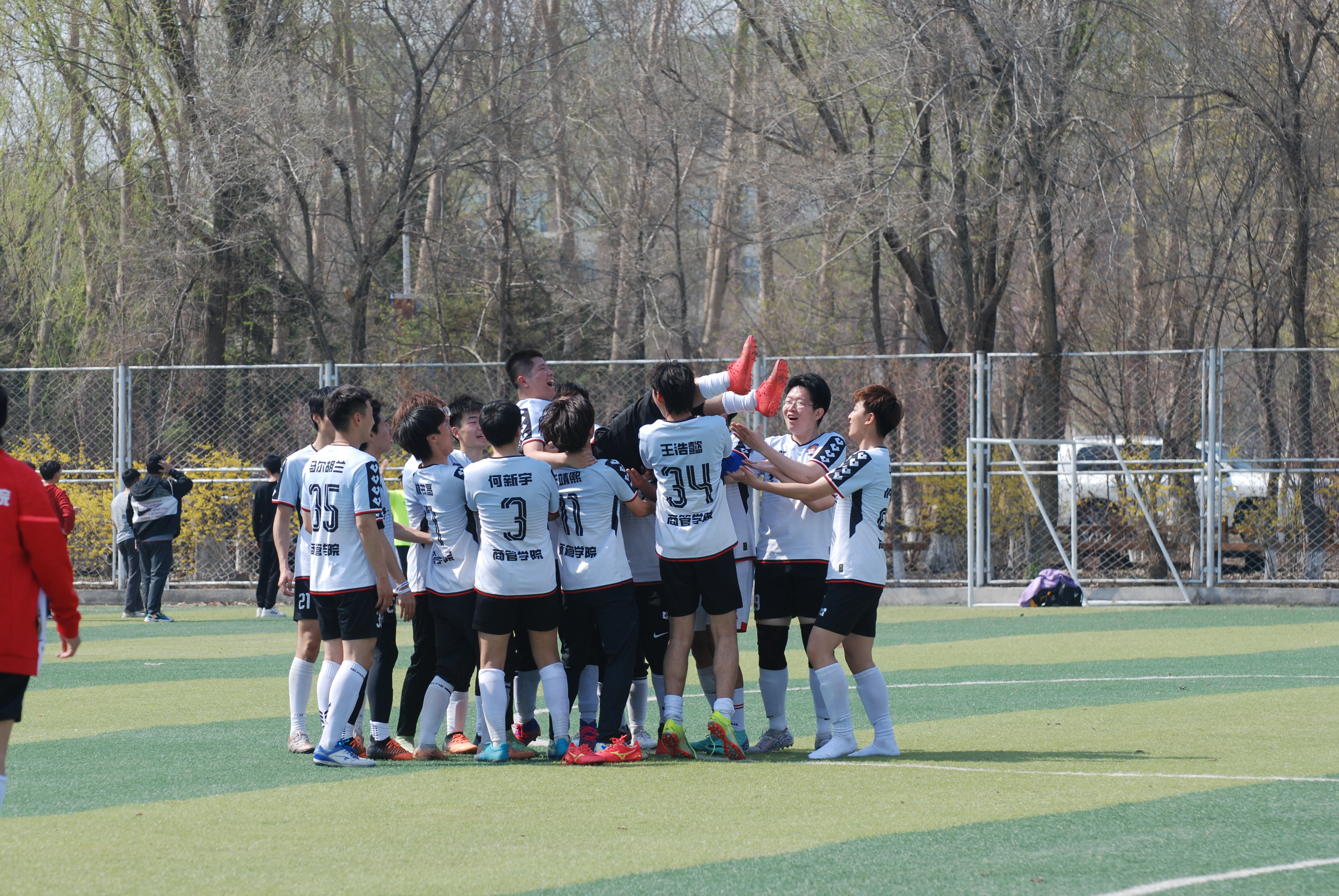 4月18日,在与生物与农业工程学院队的比赛中,常规时间内,21号黄中毅、20号王震、19号旦增晋美、10号尹註圣各进一球,而对方将比分顽强扳平,以4:4进入点球大战,最终商管学院队以6:7遗憾告负。