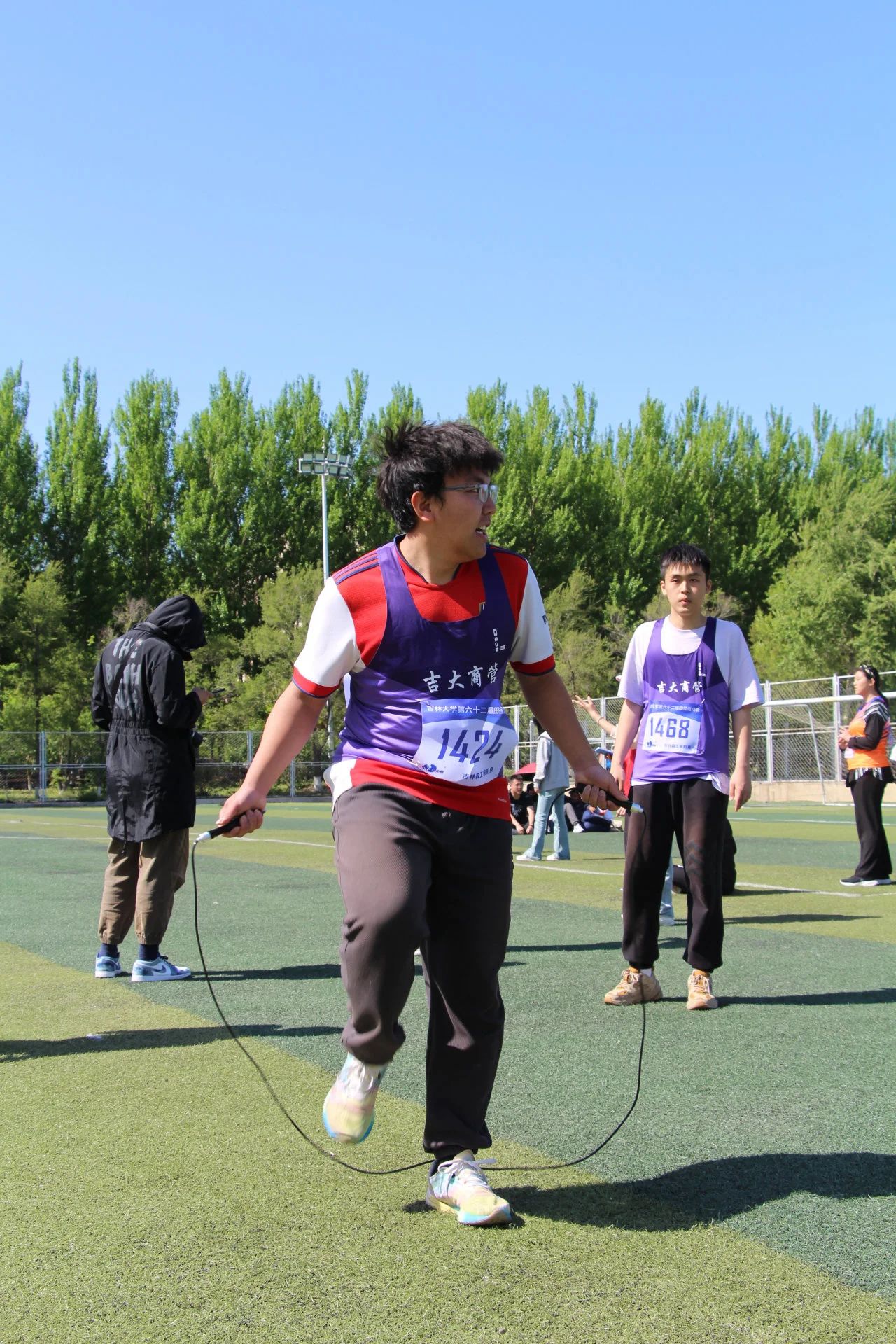 另一边的决赛赛场上,随着裁判员一声哨响,男子1分钟定点投篮决赛开始了!商管健儿们身轻如燕、敏捷如豹,最后海那尔夺得第四名,其他同学也获得了不错的成绩。男子跳远决赛战况同样激烈,商管健儿以最灵敏的身姿,奋力一跃,势如破竹、锐不可当,均取得了佳绩。