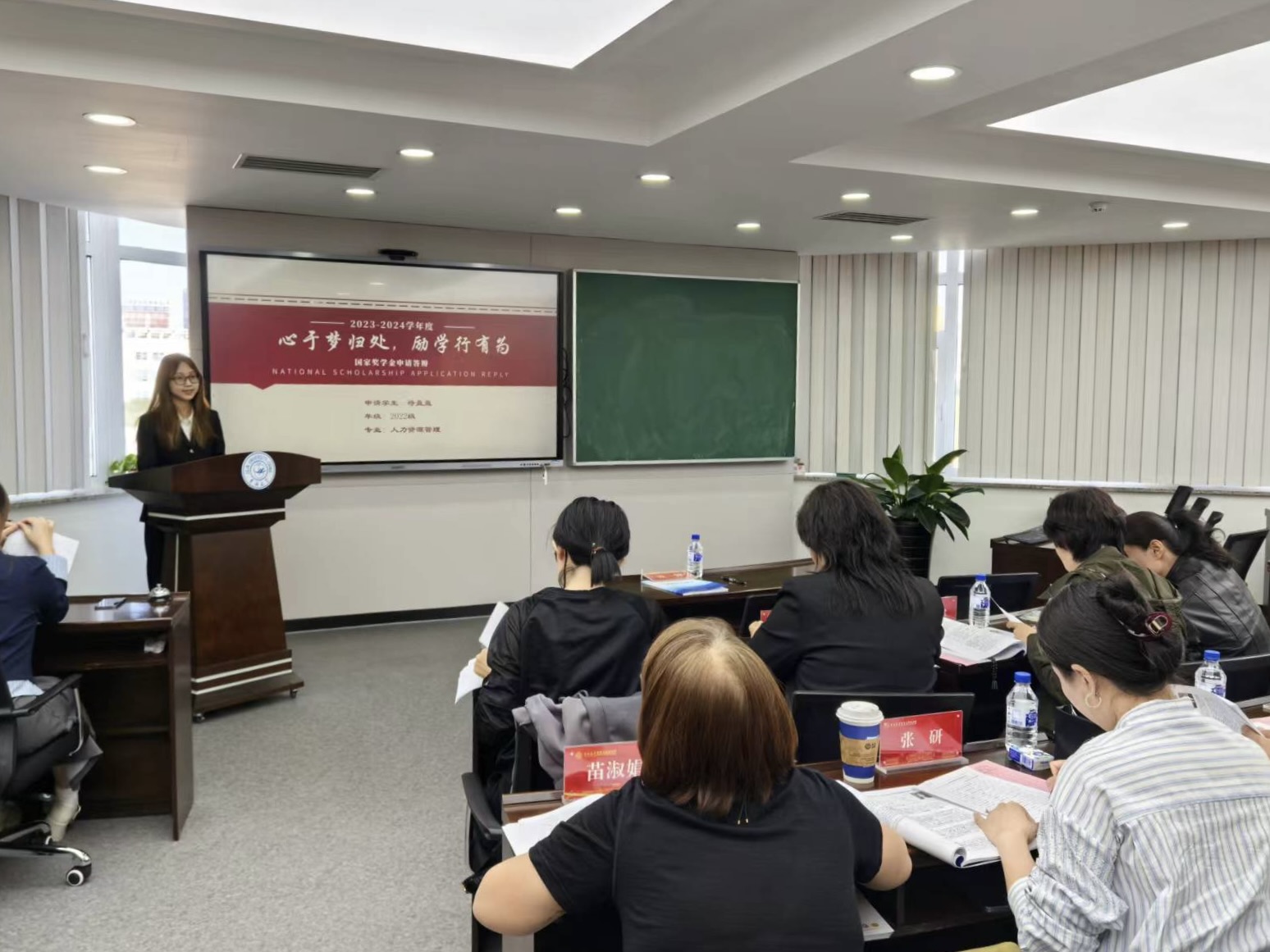为切实做好国家奖学金的评审工作,充分发挥奖学金的激励作用,进一步提高全院本科学生的学习热情,充分展现商学与管理学院学子的综合素质。根据学校国家奖学金评审工作总体安排,商学与管理学院于2024年9月23日上午九点半在东荣大厦606会议室开展2023-2024学年国家奖学金答辩评审会。