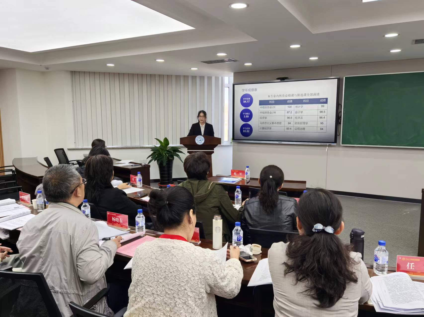本次商学与管理学院国家奖学金答辩评审会组织严谨,程序规范。由党委书记赵军、党委副书记兼副院长李帅、各系主任、系书记、学生工作办公室老师以及本科学生代表等组成的评审工作小组,负责本次国家奖学金答辩评审会。