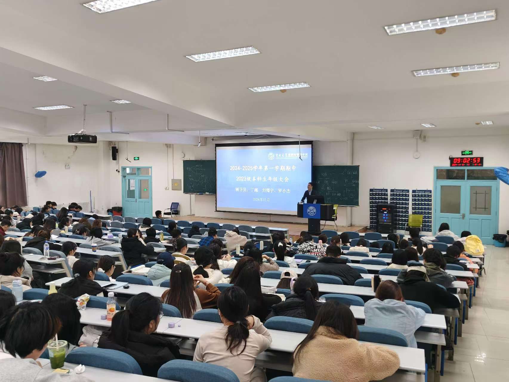 为确保2023级本科新生期中期末等诸项事宜进行顺利,商学与管理学院分别于2024年11月15的8:00和13:30,在三教四阶、三教十二阶,召开2023级本科生年级大会。会议由商学与管理学院党委副书记兼副院长李帅主持,辅导员丁越、刘翔宇、罗小杰以及商学与管理学院2023级全体本科生参加本次会议。