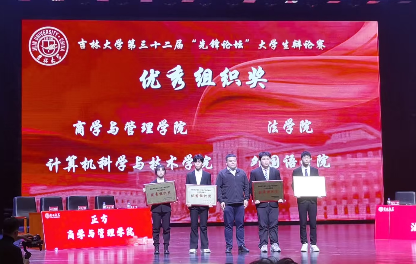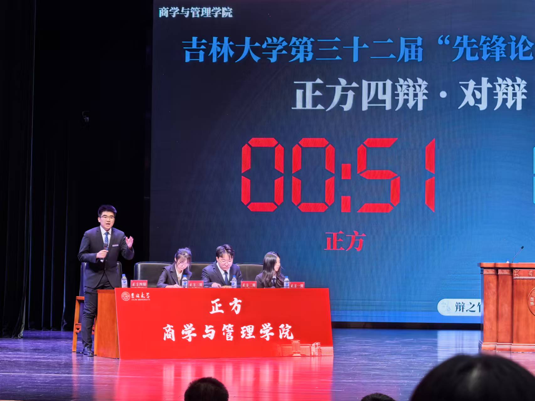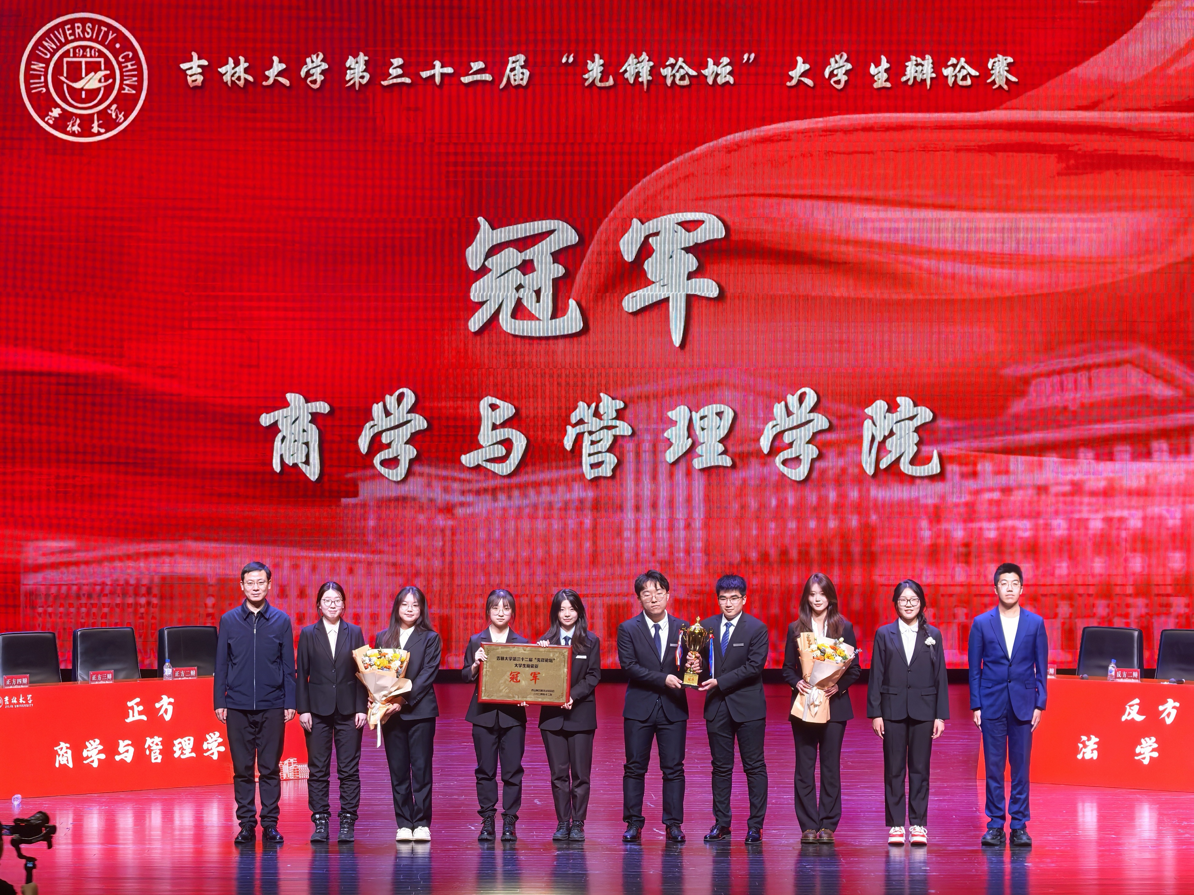 121日晚,在吉林大学第三十二届先锋论坛辩论赛决赛的赛场上,商学与管理学院辩论队以鸣立论、以思会友与法学院辩论队展开了一场精彩激烈的辩论,最终,成功夺得吉林大学第三十“先锋论坛”辩论赛的冠军