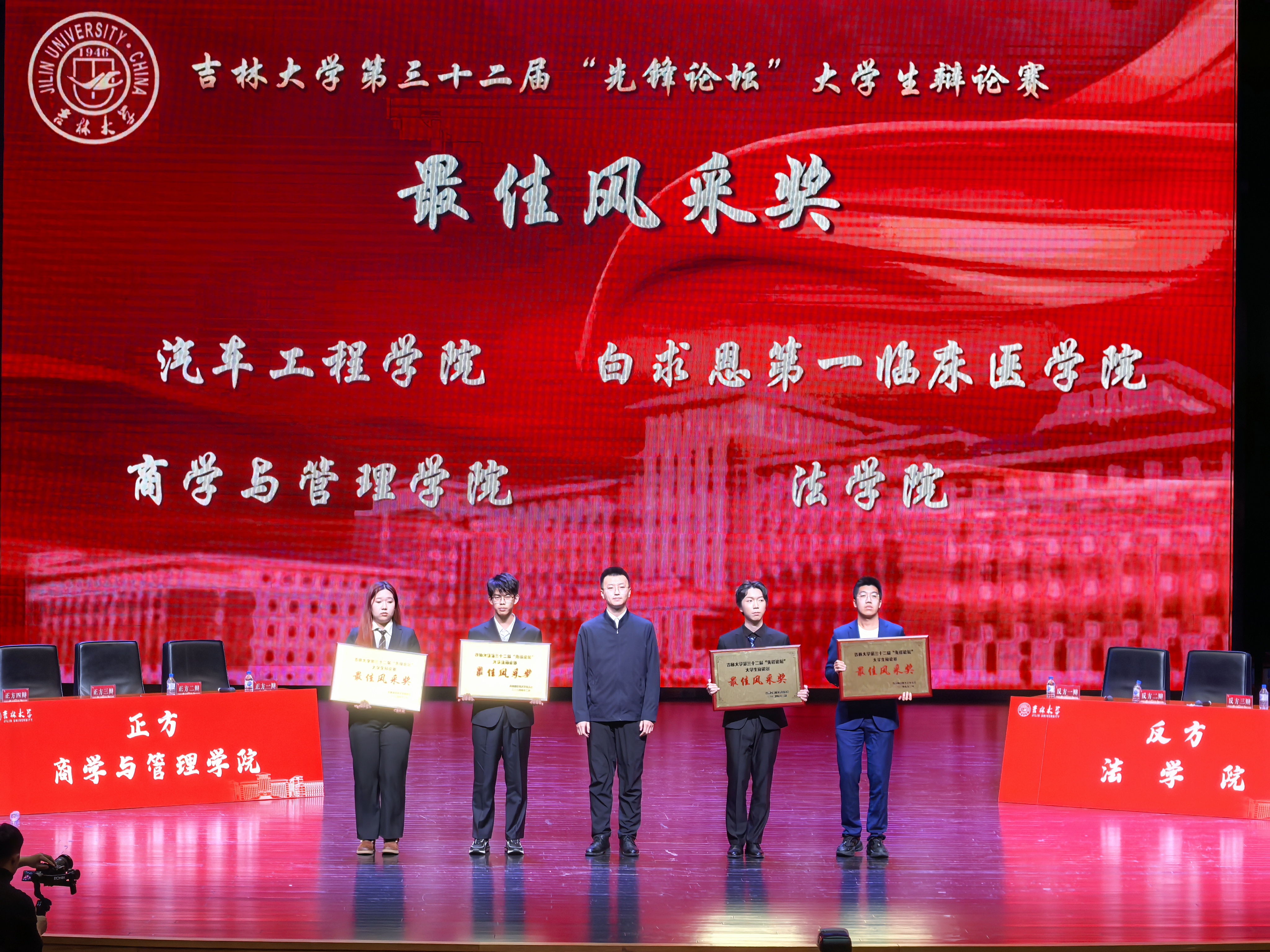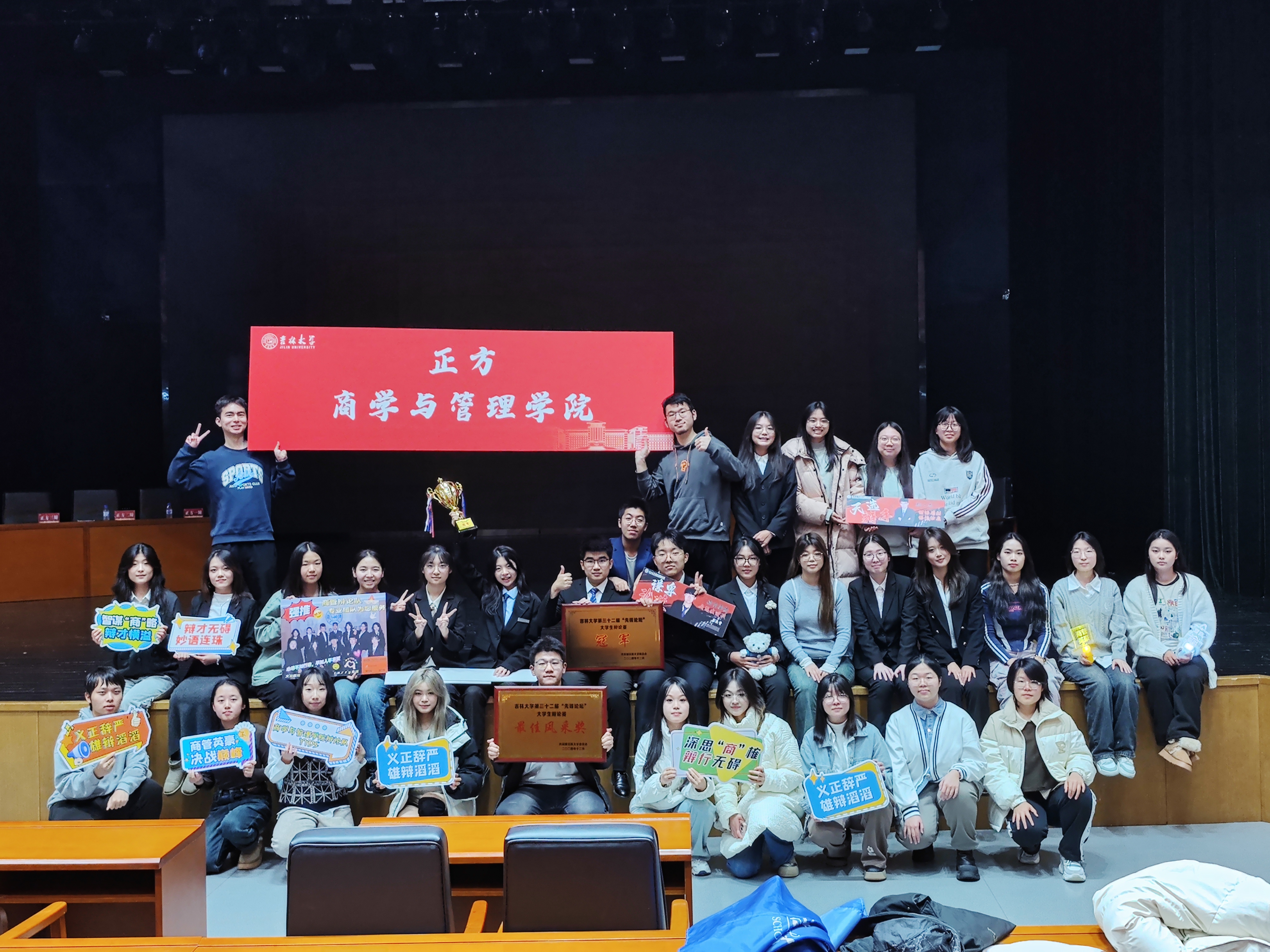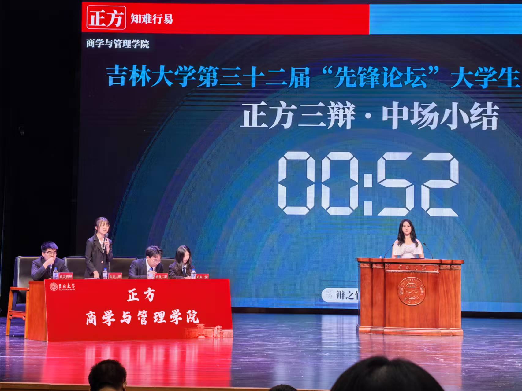 121日晚,在吉林大学第三十二届先锋论坛辩论赛决赛的赛场上,商学与管理学院辩论队以鸣立论、以思会友与法学院辩论队展开了一场精彩激烈的辩论,最终,成功夺得吉林大学第三十“先锋论坛”辩论赛的冠军
