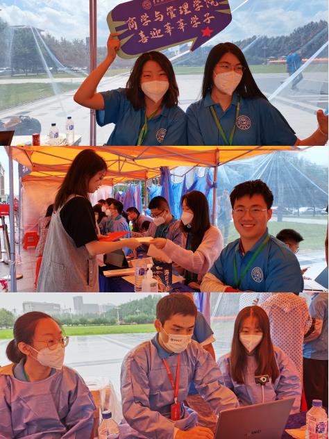 十一点左右,天空放晴,艳阳高照。忙碌了一上午的迎新志愿者们依旧坚守在各自的岗位上,尽管汗水打湿了蓝色工作服,他们依然满怀热情的引导新同学报到,办理手续。一声声学长学姐,一句句谢谢,都是对志愿者们的最大认可。21级工商管理班长王长春同学表示:“帮助下一届学弟学妹时,就仿佛看到了当初的自己,我们要做的就是传递商管学院历届承接的一种关怀,一种精神”。下午三点左右,商管学院工作点迎来了最后一名22级新生,志愿者们熟练地引导他完成了报到工作。至此,2022级研究生迎新工作圆满完成。
